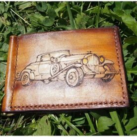 » A-Store « » Seller Profile « » Feedback profile « » Send us a message « Men's Handmade Leather Money Clip auto (on order) Unisex All our products are made entirely by hand. From cutting to sewing. !!! We remind you that this is completely handmade, so some of the nuances, such as the tone of the color scheme, the minimum details, may differ. !!! The clip is hand made of genuine Italian vegetable tanned leather, leather thickness 2 mm. The technique of drawing a drawing is pyrography. The clamp is painted in several stages, at first it is impregnation with a variety of chemistry, which prevents the clamp from cracking and gives the skin elasticity, then the color is applied - an antique gel with a patina effect. After painting, the clip is varnished to protect the paint from abrasion, and the varnish also protects the clip from moisture. Perimeter stitching with waxed thread, saddle stitch. Processing and polishing the ends. Product size 12 * 8.5 cm Inside for the lining used haberdashery leather, elastic but strong. One card compartment. Folding mechanism for banknotes. The product is coated with varnish, which prevents dirt, but if the wallet is exposed to rain, We use in our work only high quality materials and a professional line of paints such as Fiebings and Eco-Flo. We are constantly learning to improve our skills and make leather goods better and better. Our products are bright and soulful leather goods. These are things that give joy. Each piece is packed in our branded craft bag with a logo. We offer exclusive items of a higher quality level than a mass product. This is due to the fact that manual work implies strict control at all stages of production and an individual approach. It is thanks to this approach that " things with a soul " come out of the hands of our masters, which will serve their owner for more than one year. SHIPPING RETURN POLICY 30 DAYS GUARANTEE! We guarantee you complete satisfaction with all my products. If you receive an item you did not order or if an item you ordered is received damaged or defective, I will refund you the price you paid for it or replace it with identical one. Item for returning must have the original tags and packing, otherwise it won't be accepted. DO NOT ship the item back to us without contacting us first. Return shipping is responsibility of buyer. FEEDBACK Please leave 5 Star positive feedback when you receive your order. Your 5 Star positive feedback is very IMPORTANT to me which makes me keep improving. Before leaving any neutral or negative feedback, please contact me and give me the opportunity to resolve your problem and MAKE YOU A HAPPY CUSTOMER.