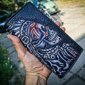 » A-Store « » Seller Profile « » Feedback profile « » Send us a message « Men's Handmade Leather Wallet male with Indian Unisex All our products are made entirely by hand. From cutting to sewing. !!! We remind you that this is completely handmade, so some of the nuances, such as the tone of the color scheme, the minimum details, may differ. !!! Handmade wallet made of genuine Italian vegetable tanned leather, leather thickness 2 mm. Drawing techniques pyrography and embossing followed by painting. Wallet painting takes place in several stages, at first it is impregnation with various materials that prevent the wallet from cracking and give the skin elasticity, then color is applied. After painting, the wallet is covered with varnish to protect the paint from abrasion; the varnish also protects the wallet from moisture and gives the product a noble shine. Perimeter stitching is done only by hand, with a waxed thread with a saddle stitch. Only a hand seam makes the product as strong and durable as possible. The size of the folded wallet is 9.5 * 11 cm. Inside, for the lining, haberdashery leather is used, elastic but strong. This leather allows you to fill the wallet with a large number of cards and bills, but keep the wallet compact. Two compartments for banknotes, coin box, 4 compartments for cards. The wallet closes with an inner button. (if you wish, you can skip the order). You can also order other wallet content from us (for example, instead of a coin compartment, there are 4 more compartments for cards) and choose a color scheme for the picture. We use in our work only high quality materials and a professional line of paints such as Fiebings and Eco-Flo. We are constantly learning to improve our skills and make leather goods better and better. Our products are bright and soulful leather goods. These are things that give joy. Each piece is packed in our branded craft bag with a logo. We offer exclusive items of a higher quality level than a mass product. This is due to the fact that manual work implies strict control at all stages of production and an individual approach. It is thanks to this approach that " things with a soul " come out of the hands of our masters, which will serve their owner for more than one year. SHIPPING RETURN POLICY 30 DAYS GUARANTEE! We guarantee you complete satisfaction with all my products. If you receive an item you did not order or if an item you ordered is received damaged or defective, I will refund you the price you paid for it or replace it with identical one. Item for returning must have the original tags and packing, otherwise it won't be accepted. DO NOT ship the item back to us without contacting us first. Return shipping is responsibility of buyer. FEEDBACK Please leave 5 Star positive feedback when you receive your order. Your 5 Star positive feedback is very IMPORTANT to me which makes me keep improving. Before leaving any neutral or negative feedback, please contact me and give me the opportunity to resolve your problem and MAKE YOU A HAPPY CUSTOMER.