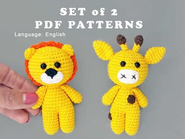 ! ! ! This listing is not for a finished product or a paper pattern! PDF PATTERNS ONLY ! !  This pattern doesn’t contain crochet lessons. Crochet this product requires basic crochet skills. Giraffe: printable PDF-file 10 pages long with 27 pictures. Lion: printable PDF-file 10 pages long with 29 pictures. Difficulty: Easy Language: English I use USA terminology for my pattern. FINISHED SIZE: approx 3.9-4 inches (10 cm) with the yarn I used (YarnArt Ideal) and hook 1.9-2.0 mm You can use any yarn (wool, acrylic, etc). If you use different yarn, the toy will be bigger or smaller and you will need more or less yarn than stated in the pattern. Also you will need a hook and eyes of another size. You will need: • Yarn • Safety eyes • Crochet hook • Tapestry needle • Filler • Pins • Scissors This pattern is for personal use only. Don’t sell and don’t share, please. You are welcome to sell items made of this pattern. I would be happy if you link back to my shop and give credit to me as the designer. Amigurumi pattern, Pdf for beginners, Easy safari animals, Soft toy for baby, DIY photo tutorial, Crochet giraffe, Jungle plush stuffed, Baby gift lion, gift for new mum, Funny animal doll, safe toddler toy, boy nursery decor, cute Africa for girl