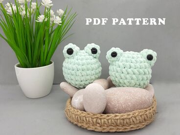 ! ! ! This listing is not for a finished product or a paper pattern! PDF PATTERNS ONLY ! ! 2 printable PDF-files 18 pages long with 55 pictures This pattern doesn’t contain crochet lessons. Crochet this product requires basic crochet skills. Difficulty: Easy Language: English Terminology: USA FINISHED SIZE: Frogs approx. 2 ½ - 2 ¾ inches (6-8 cm) using the materials I used You will need: - Yarn - Crochet hook - Tapestry needle - Polyester fiberfill for stuffing - Pins - Scissors Mockup in the first photo www.freepik.com This pattern is for personal use only. Don’t sell and don’t share, please. You are welcome to sell items made of this pattern. I would be happy if you link back to my shop and give credit to me as the designer. Amigurumi pattern, for new beginners, Pdf crochet mobile, DIY easy soft toy, Cute frog for baby, DIY photo tutorial, Nursery toad decor, kawaii frogcore, forest goblincore, Cottagecore theme, safe toddler toy, woodland animals, stuffed plushie gift