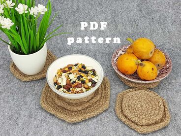 ! ! ! This listing is not for a finished product or a paper pattern! PDF PATTERN ONLY ! ! Printable PDF-file 13 pages long with 30 pictures This pattern doesn’t contain crochet lessons. Crochet this product requires basic crochet skills. Difficulty: Easy Language: English Terminology: USA FINISHED SIZE: see pics. You will need: see pics. This pattern is for personal use only. Don’t sell and don’t share, please. You are welcome to sell items made of this pattern. I would be happy if you link back to my shop and give credit to me as the designer. Crochet hexagon, Pdf photo tutorial, Honeycomb pattern, for new beginner, earth friendly gift, DIY easy fall decor, Rustic wedding twine, Farmhouse kitchen, japandi eco decor, table tea coasters, zero waste living, Geometric coffee, biodigradable jute