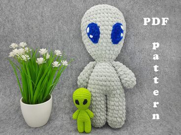 Printable PDF-files 18 pages long with 50 and 60 pictures. ! ! ! This listing is not for a finished product or a paper pattern! PDF PATTERN ONLY ! ! This pattern doesn’t contain crochet lessons. Crochet this product requires basic crochet skills. Difficulty: Easy / intermediate Language: English Terminology: USA FINISHED SIZE: see pics. You will need: see pics. More aliens in my store - https://lavky.com/amigurumipatternspdf/?features_hash=1-38427 This pattern is for personal use only. Don’t sell and don’t share, please. You are welcome to sell items made of this pattern. I would be happy if you link back to my shop and give credit to me as the designer. Amigurumi pattern, for new beginners, DIY easy soft toy, Cute monster baby, Pdf photo tutorial, Little green man, I believe ufo, space themed, nursery decor, Squishy silly alien, Baby shower gift, gift for new mum, I want to believe