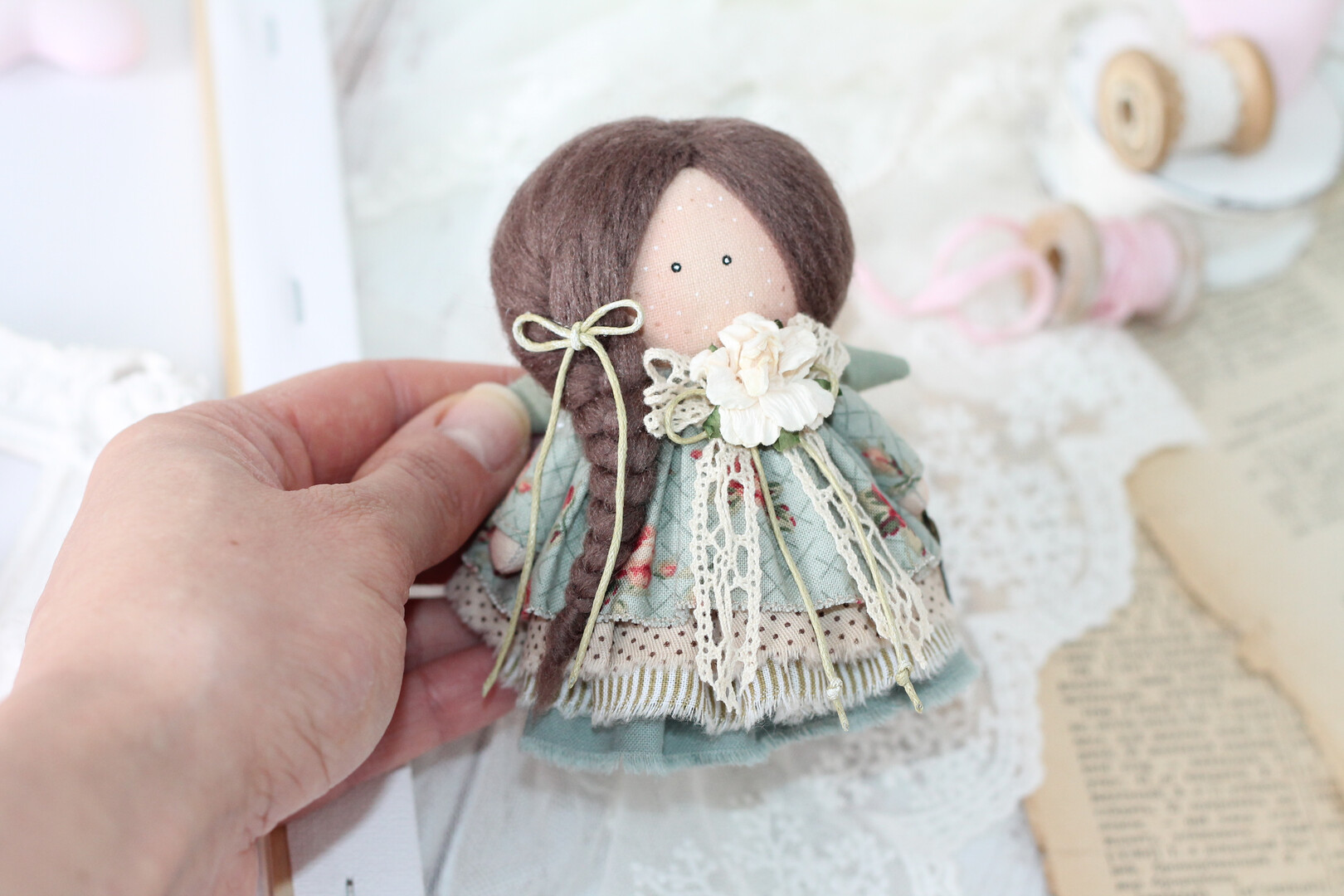 Adorable little doll with brown hair