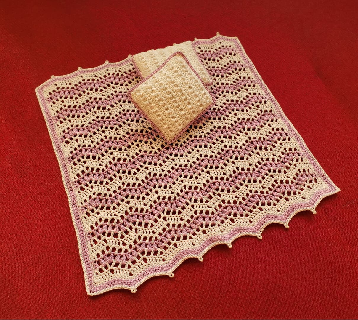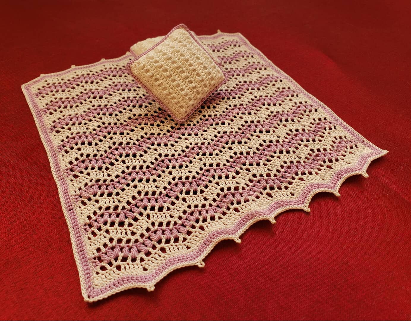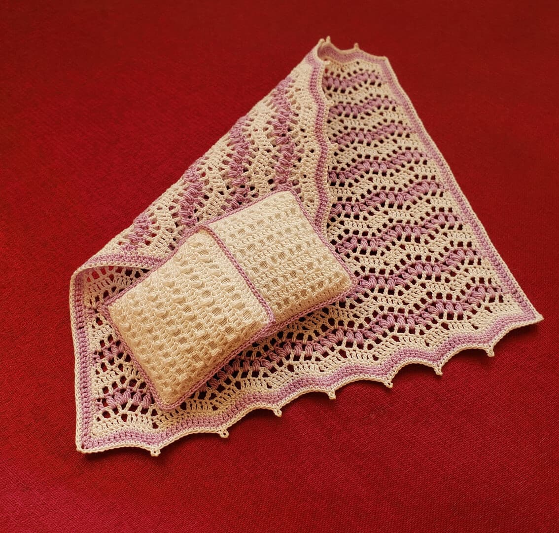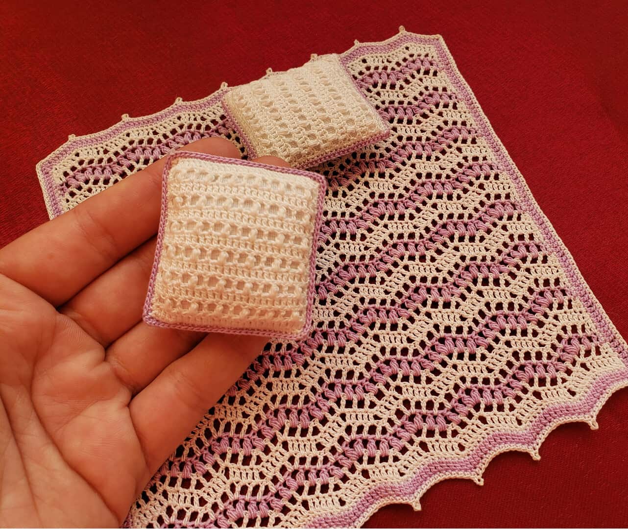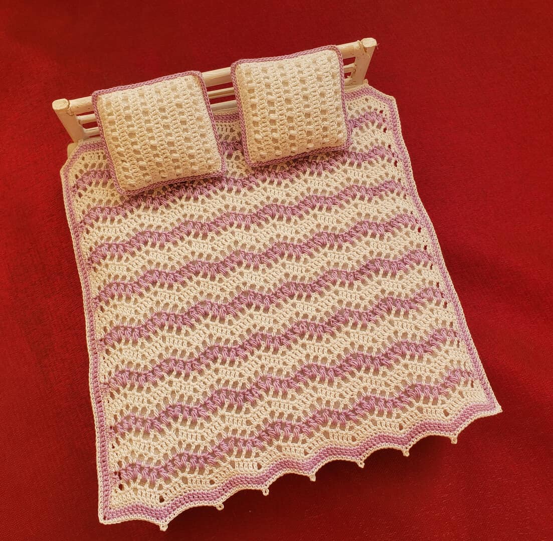 Dollhouse bed set 1:12 scale, dollhouse blanket + 2 mini pillows, Doll crochet kit, Victorian dollhouse, Roombox bedroom, Dollhouse afghan