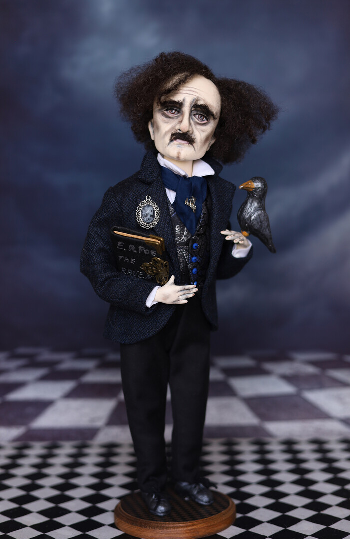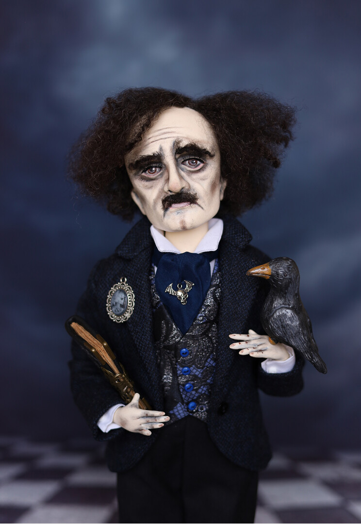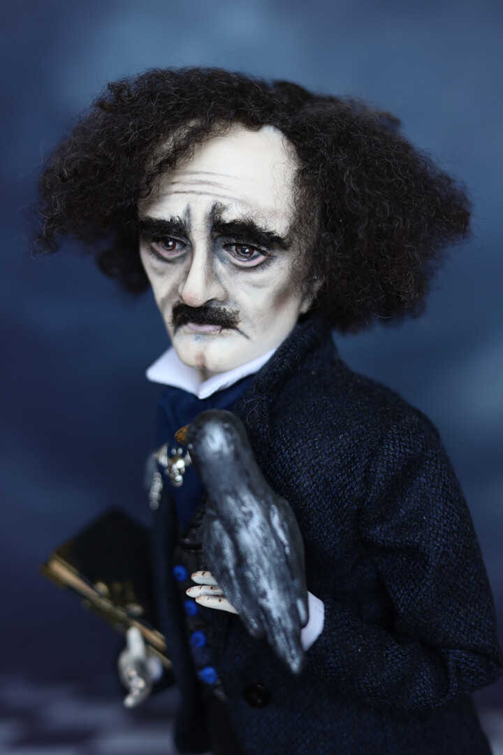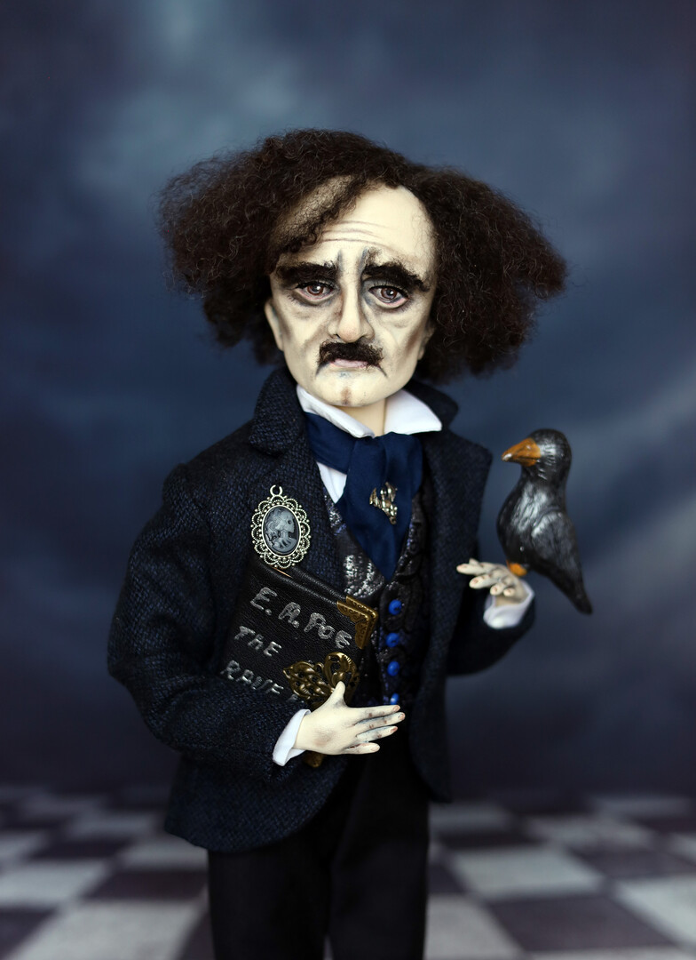 Edgar Allan Poe Figurine Handmade art doll ooak, Raven poem, gothic horror darkart, horror doll , unique gift for Poe fans