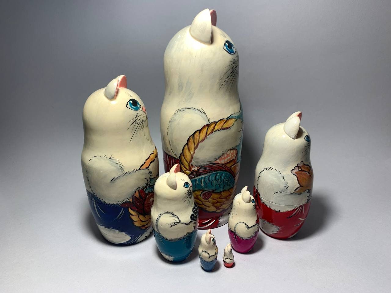 Handmade Nesting Doll, 7th Nesting Doll, Hand Painted Nesting Doll, Nesting Doll Cat, Nesting Doll, Wooden Doll, Handmade Doll, Figurine Сat