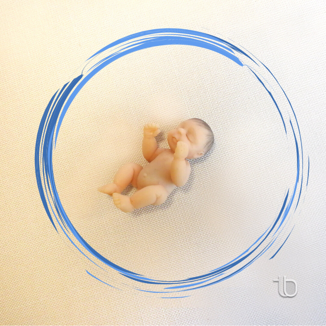 My baby is made from a professional doll maker’s polymer clay and painted with paints and pencils.