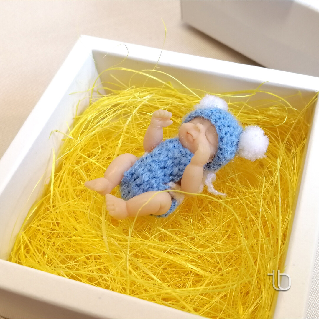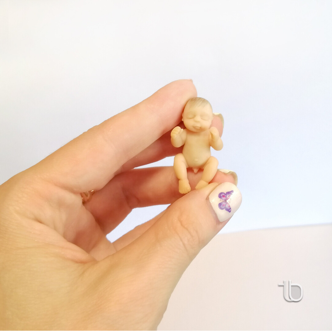 Miniature baby size just 1,2 inch. One-of-a-kind Micro Mini baby 1:12 dollhouse scale.
