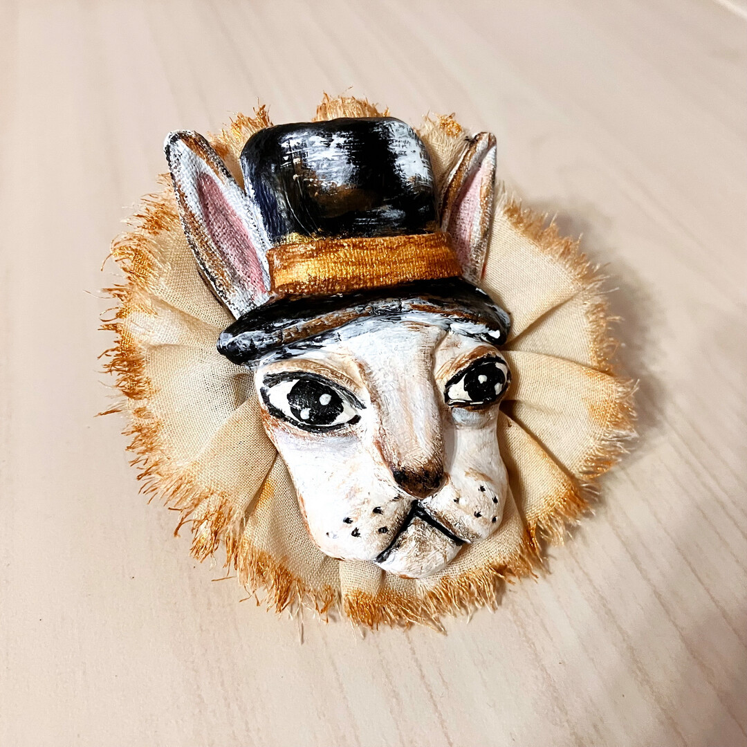 This bright stylish accessory will not go unnoticed. Art brooch Bunny pin can be great as gift for Alice in wonderland and animal pin lovers.
