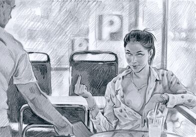 A minimalist yet emotionally charged moment — intimate, ironic, and honest.