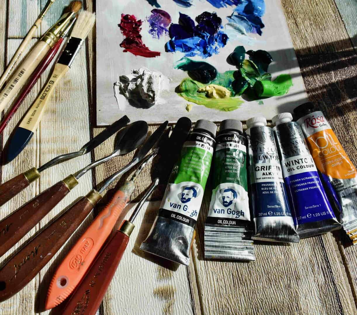 * Materials: oil paints, panel, palette knife, varnish, and brushes.