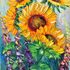 Flower meadow wildflowers and sunflowers, impasto painting, 12 by 16 inches in size