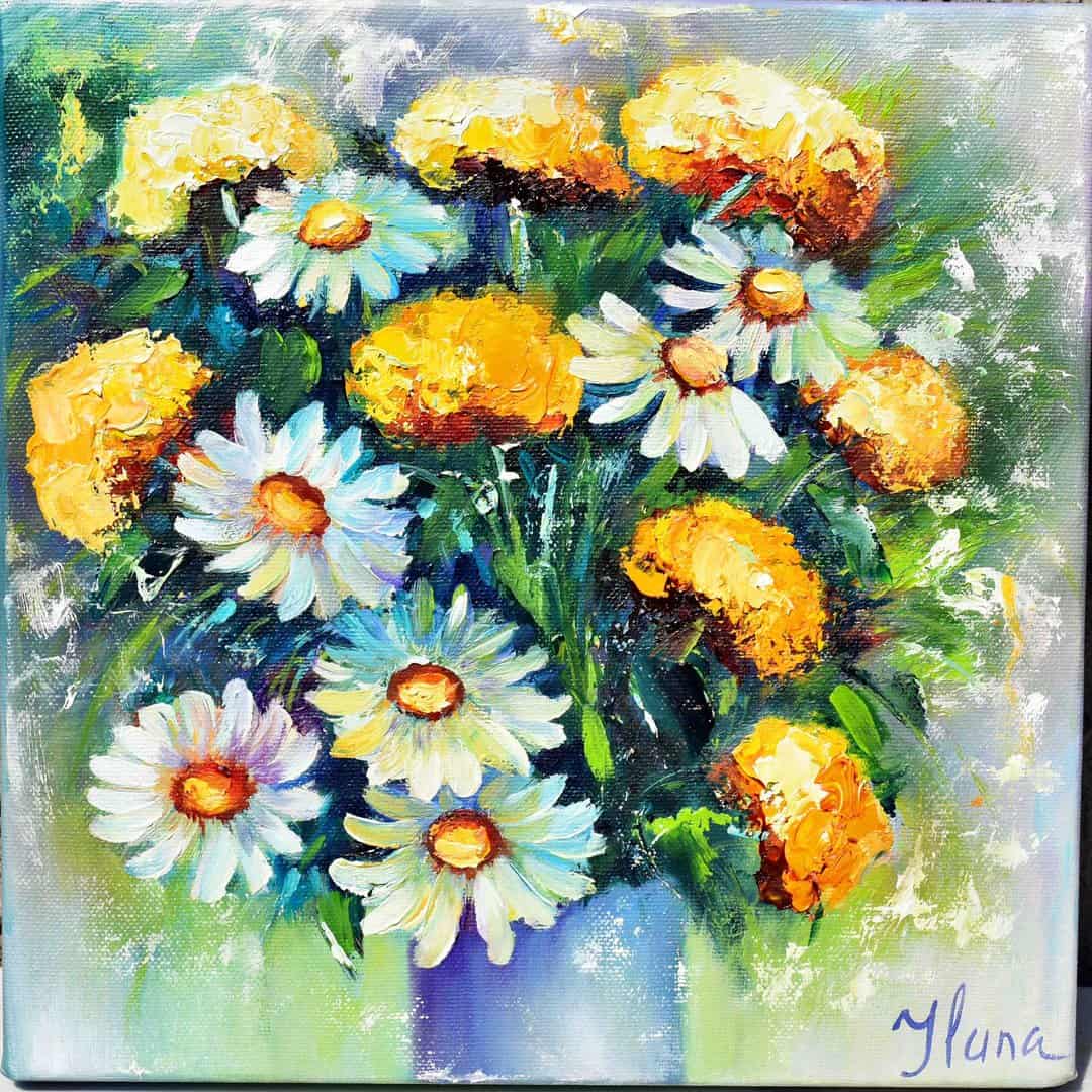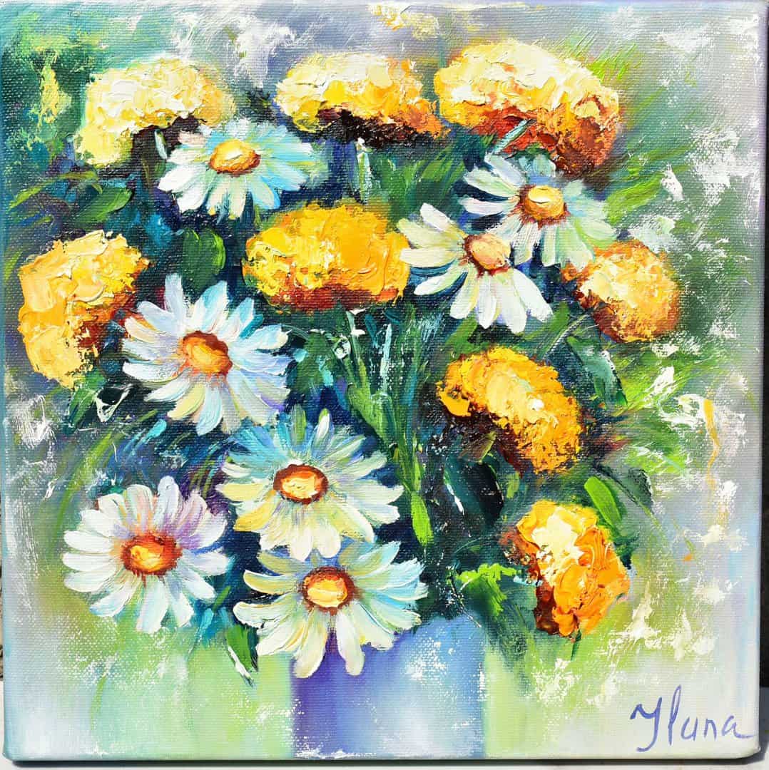 Wildflowers in a vase, oil painting 10 by 10 inches in size