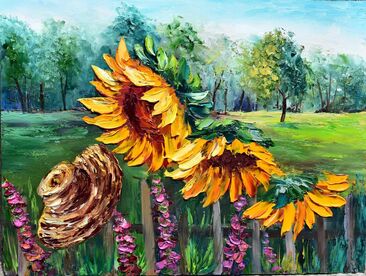 This oil painting, created with a palette knife, features wildflowers in a vase. It will decorate a living room or dining room and makes a wonderful gift for art lovers.