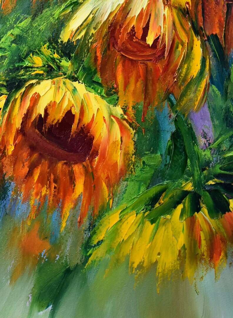 sunflowers painting by IMPASTO, interior painting 14 by 18 inches in size