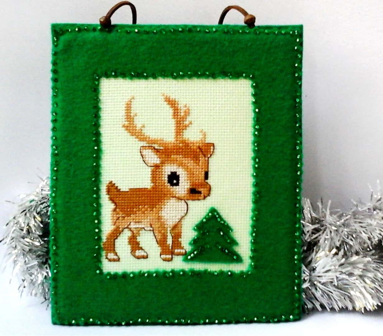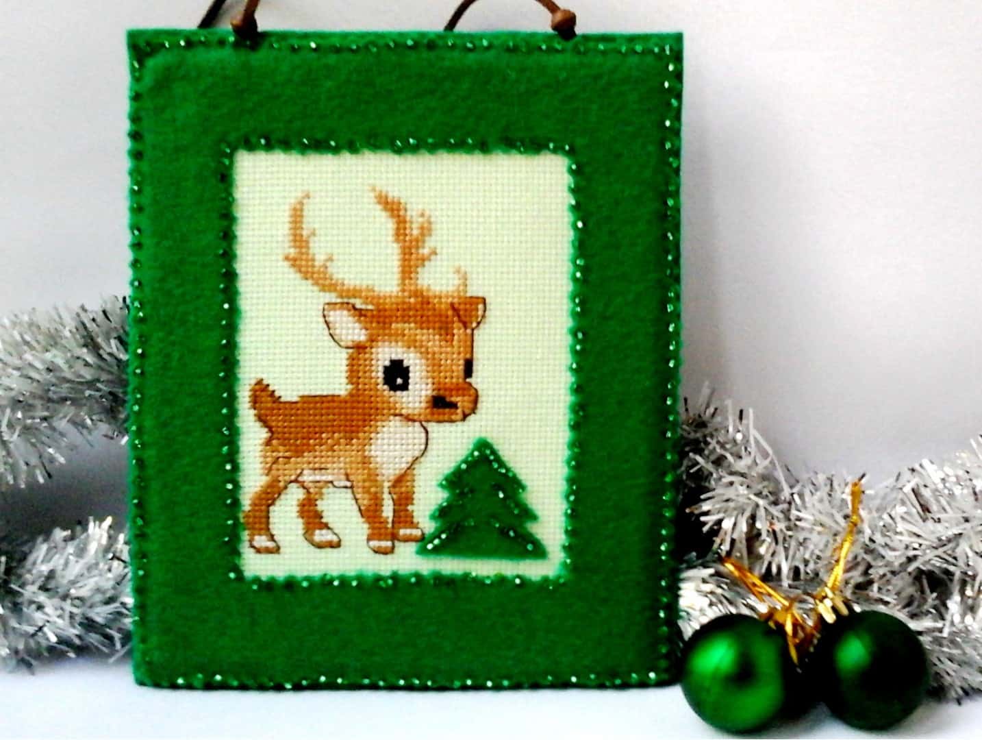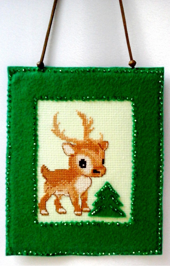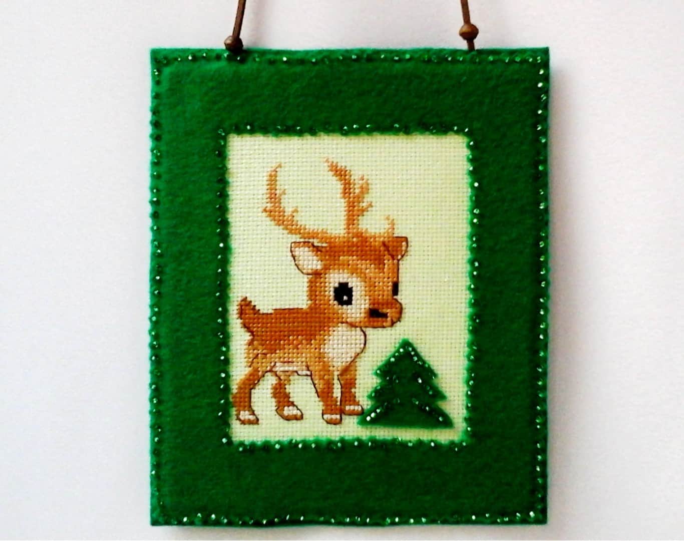 Reindeer Finished Embroidery, Nursery Deer Decor, Granddaughter Birthday gifts, Baby Deer Cross Stitch, Gift for Grandson, Deer Baby Shower