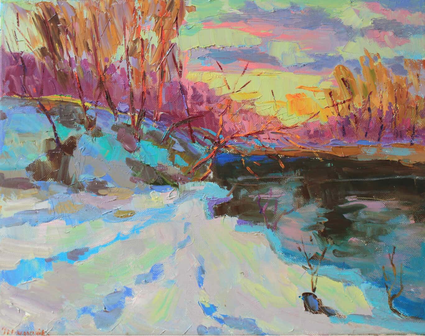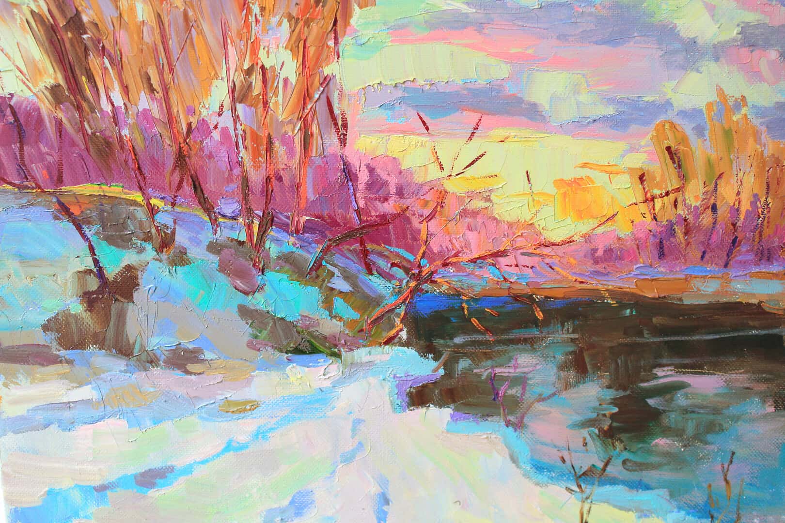 Abstract wall art Landscape art Large wall canvas River painting