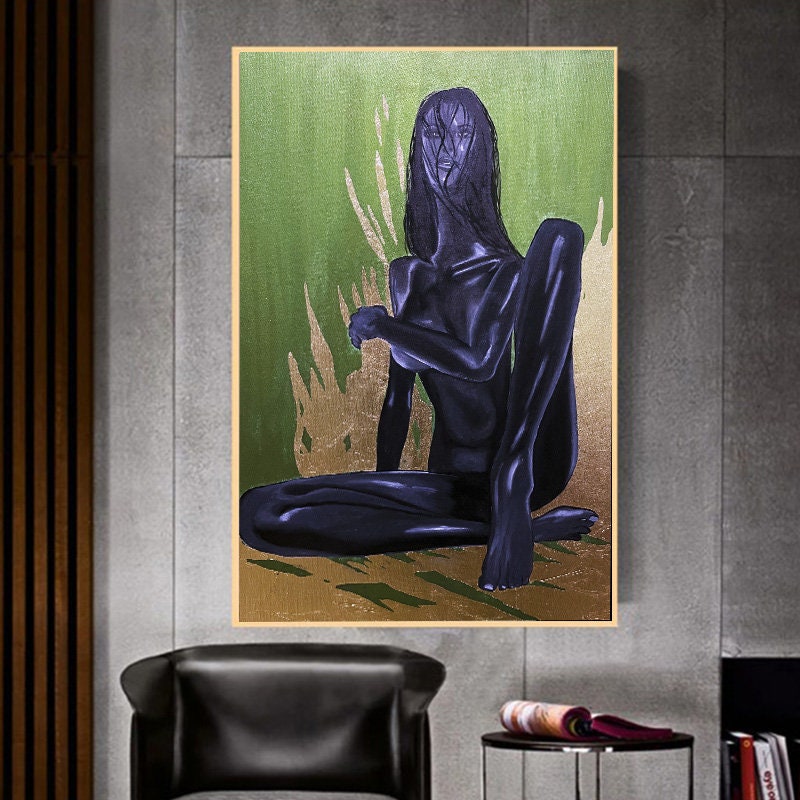 Afro women oil painting African girl wall art Living room decor Erotic nude art Black sex canvas Nude exotic body Erotic black nudity sex