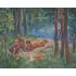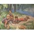 Ancient mid-century painting,pastel genre scene,Boys relaxing in forest on banks river.Summer holidays,original art USSR artist V.Kostenko