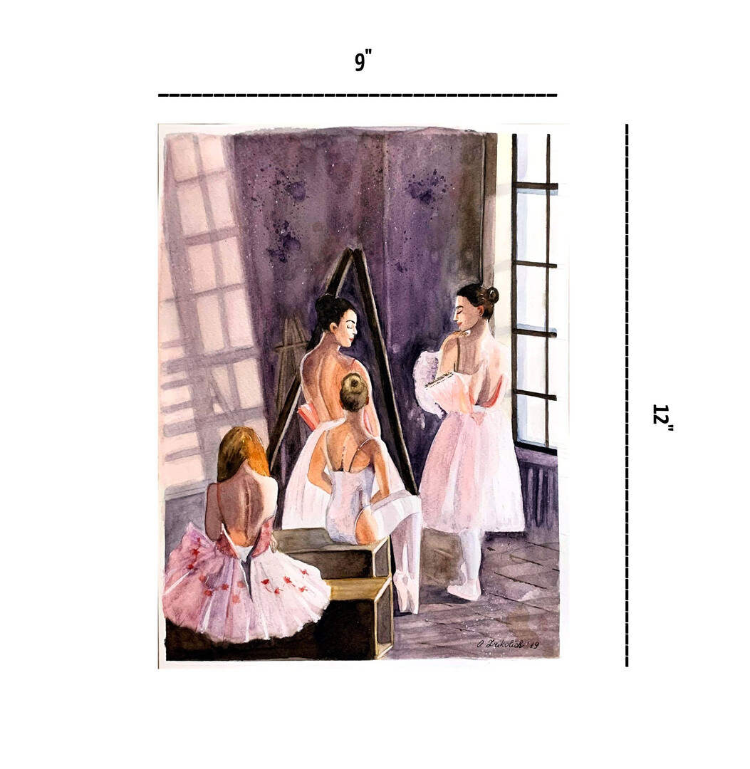 Ballerina Watercolor Ballet Dancer Painting Ballerina Painting 9" by 12"