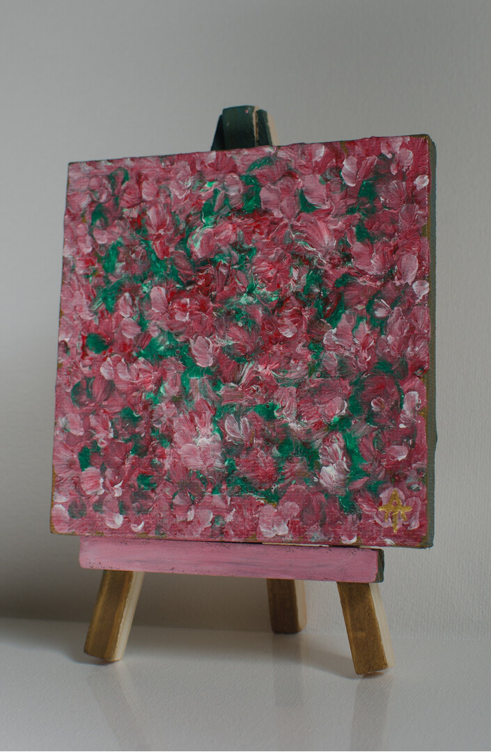 Floral Fantasies - Whimsical Original Painting on Mini Canvas Tiny Easel - Bright Acryl Paints
