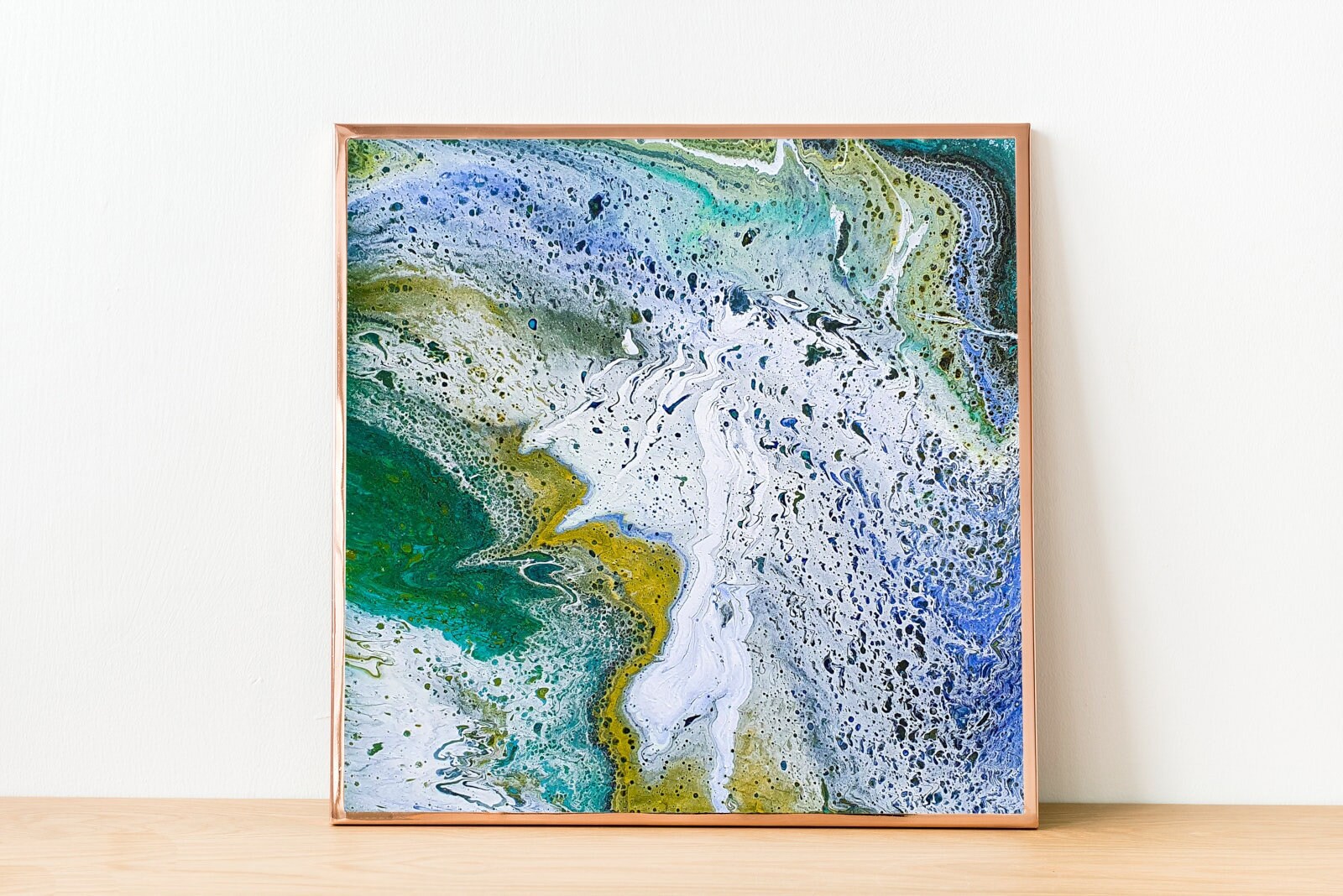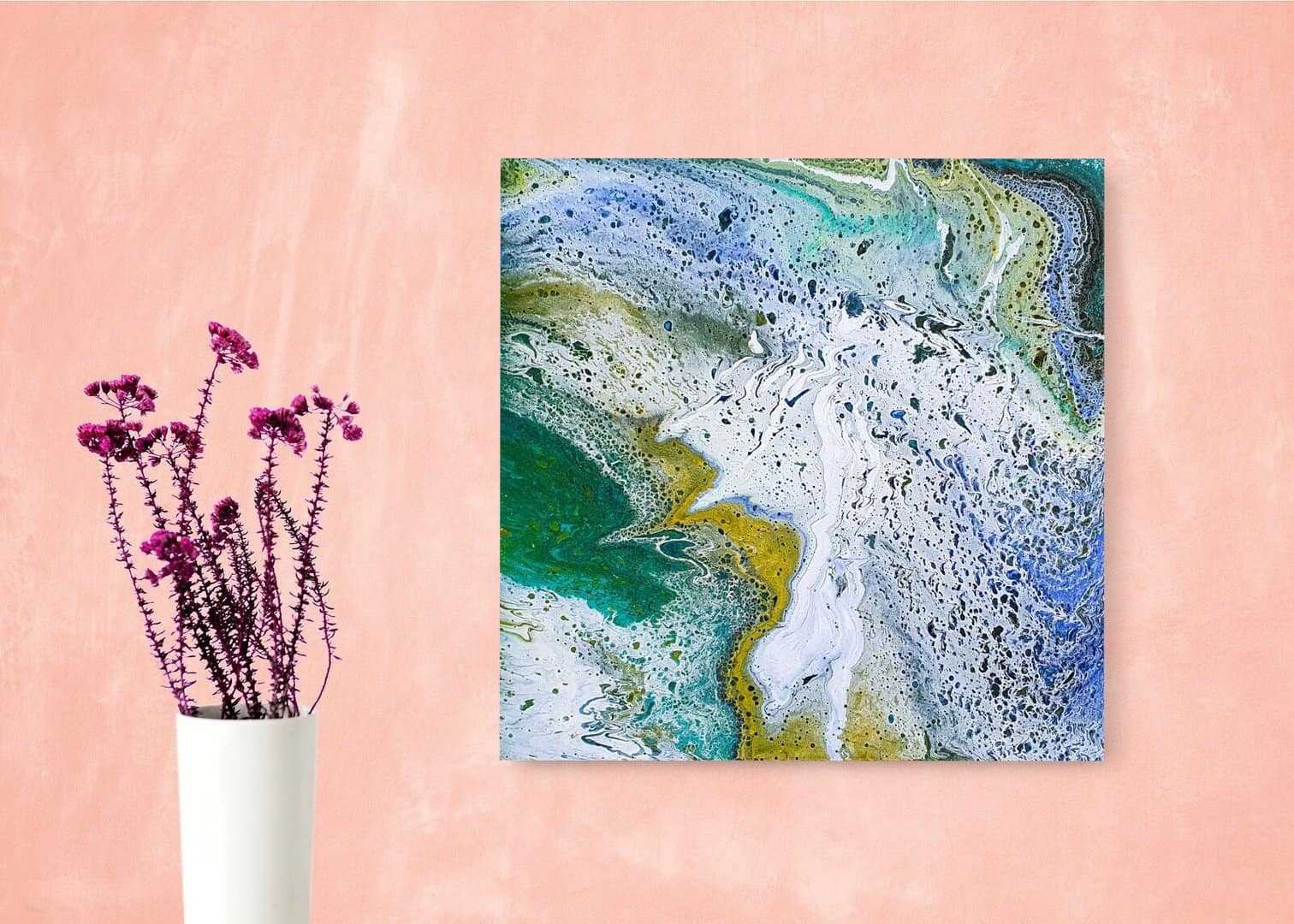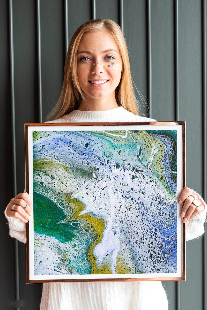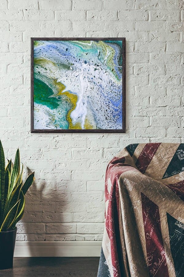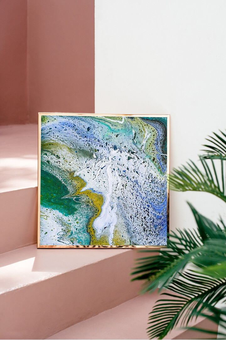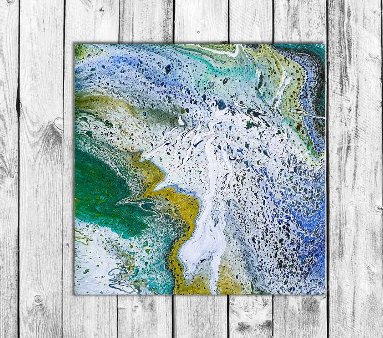 In the photo, you see a fairly painting technique of fluid art.