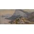 Only print copy on canvas (original sold). Original, 1955, big horizontal sea foggy landscape in oil.Mountains and the sea.Rocky. Signed