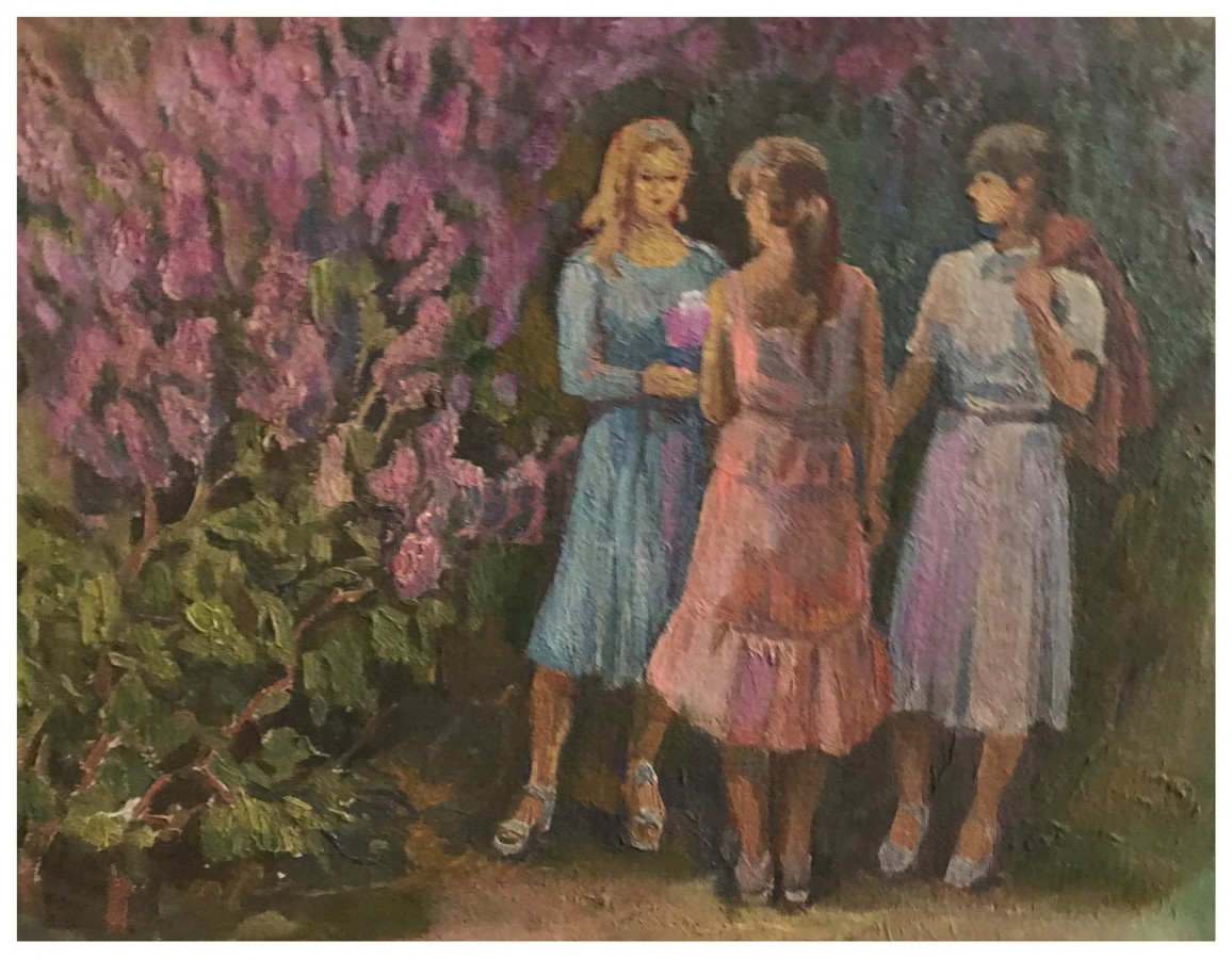 Three young girls-girlfriends on a background
