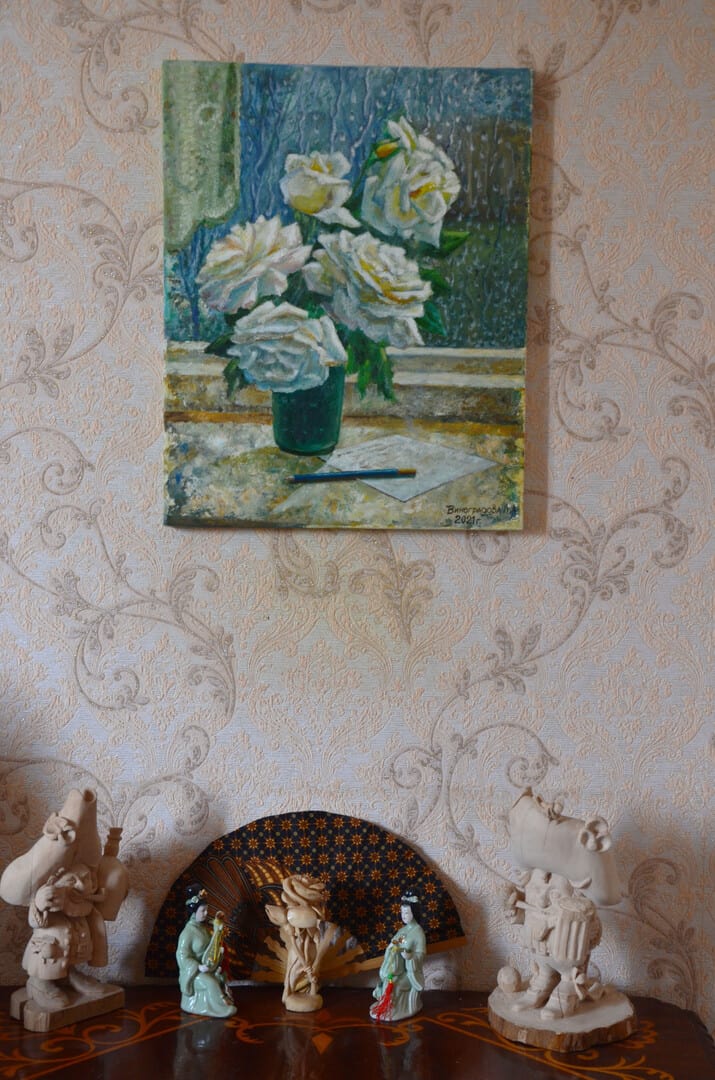 The sun after the rain illuminates the roses.Unspoken words are written on a piece of paper.This is a gift from the soul. The picture reminds of summer, warmth, love. Let this picture warm you with its sunlight in any weather. The painting is protected with clear varnish.