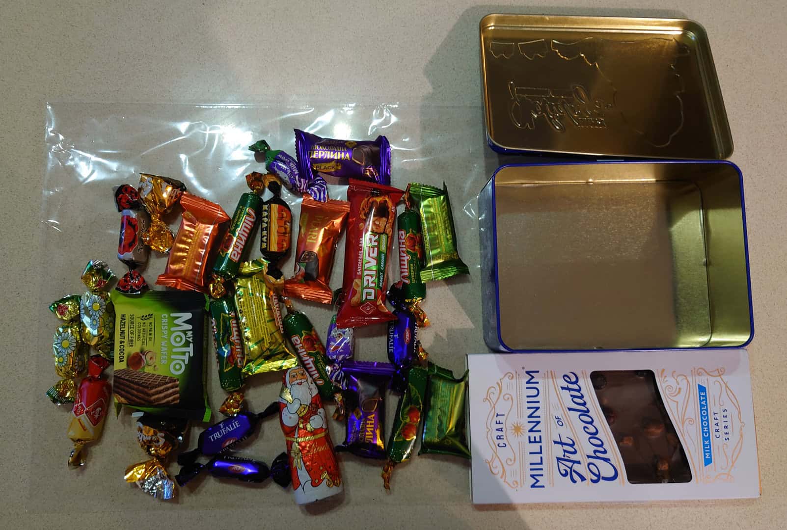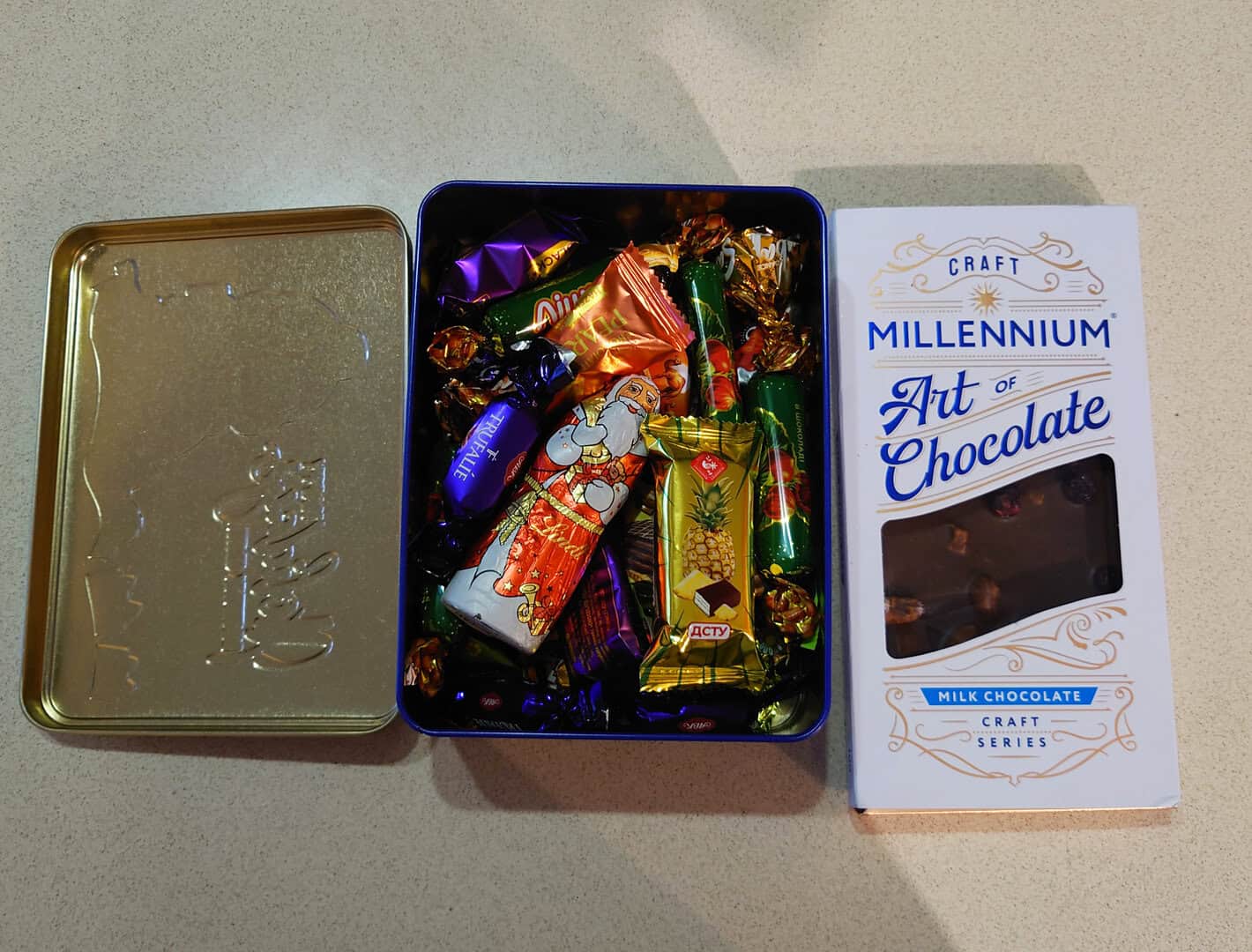 Very friendly and and very X-mas mood made a special box from Ukrane - signed calendar, t-shit M size and candies.Everything made in Ukraine.best Choise for a gift for New Year Eve.