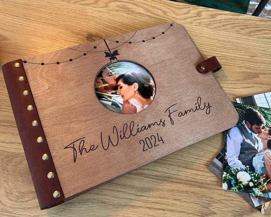 apture and cherish your precious holiday memories with our Personalized Christmas Photo Album. This elegant leather-bound album features a unique cut-out Christmas ball on the cover, making it the perfect display for your favorite 6"x4" holiday photos. Each album is carefully handcrafted and can be personalized with your family name or a special message, making it a wonderful gift for your loved ones.