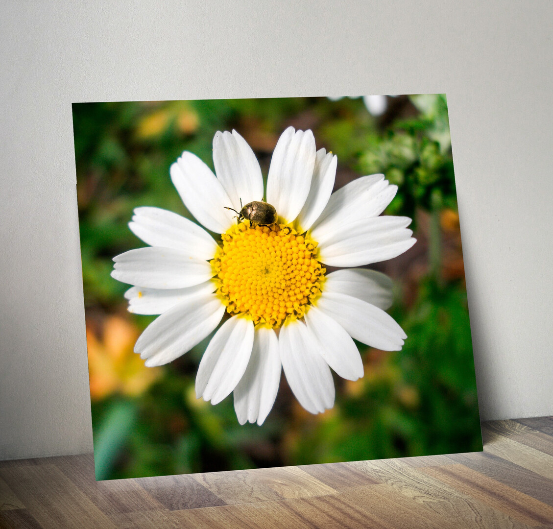 Square Magic Field Summer Grass - Chamomile Flower with Bug - Macro