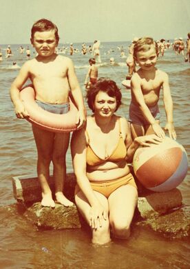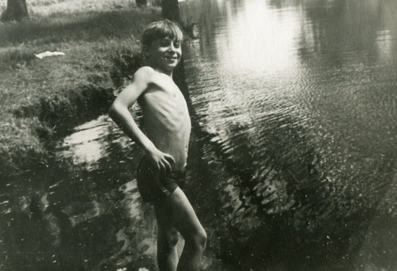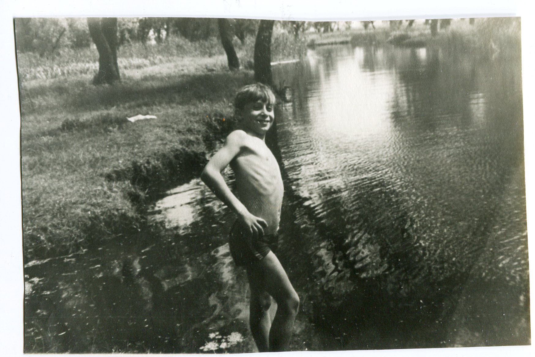 Handsome boy children on beach summer holidays snapshot vintage photo found photo