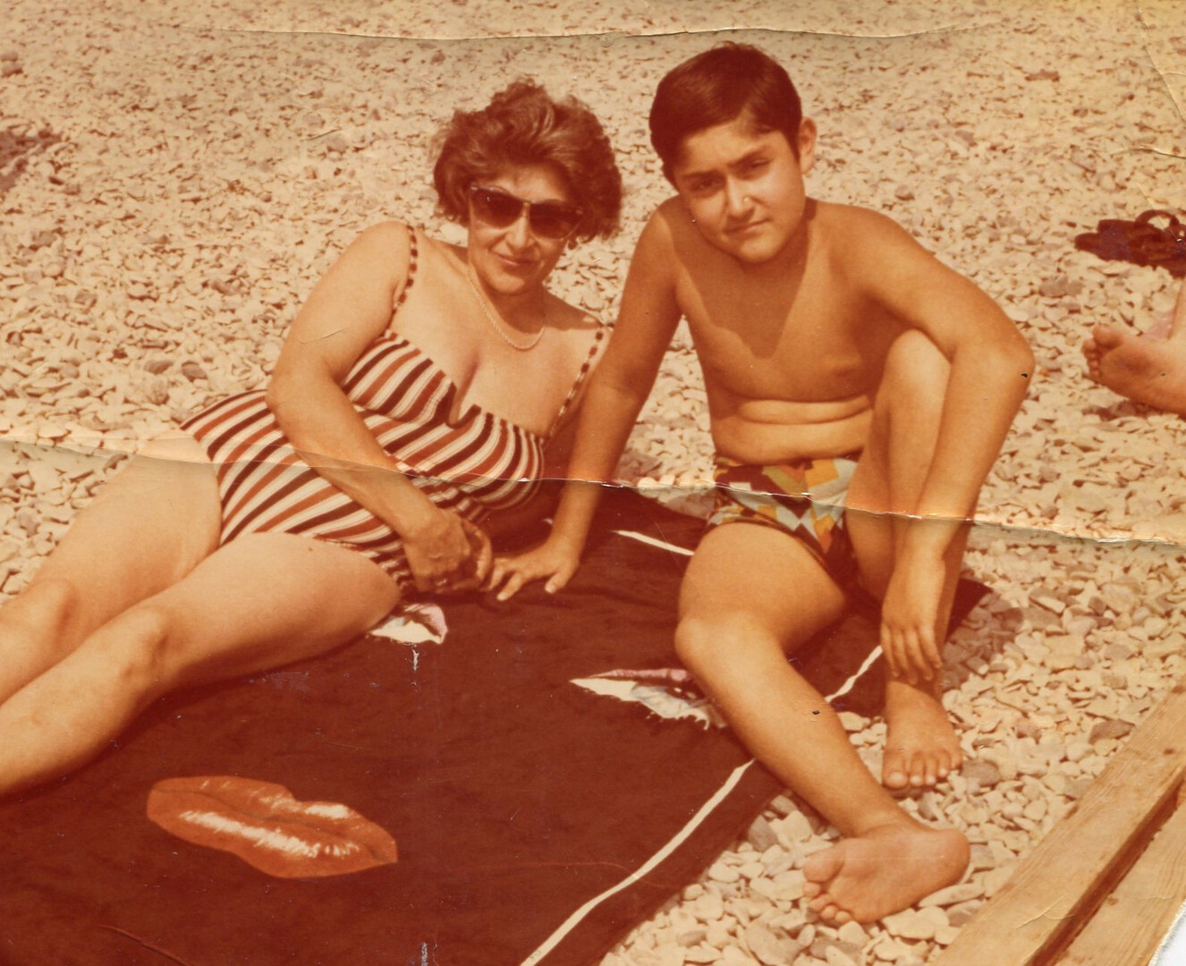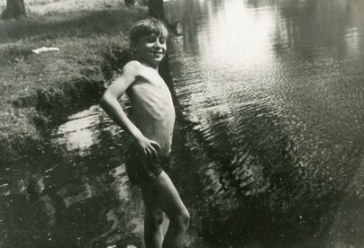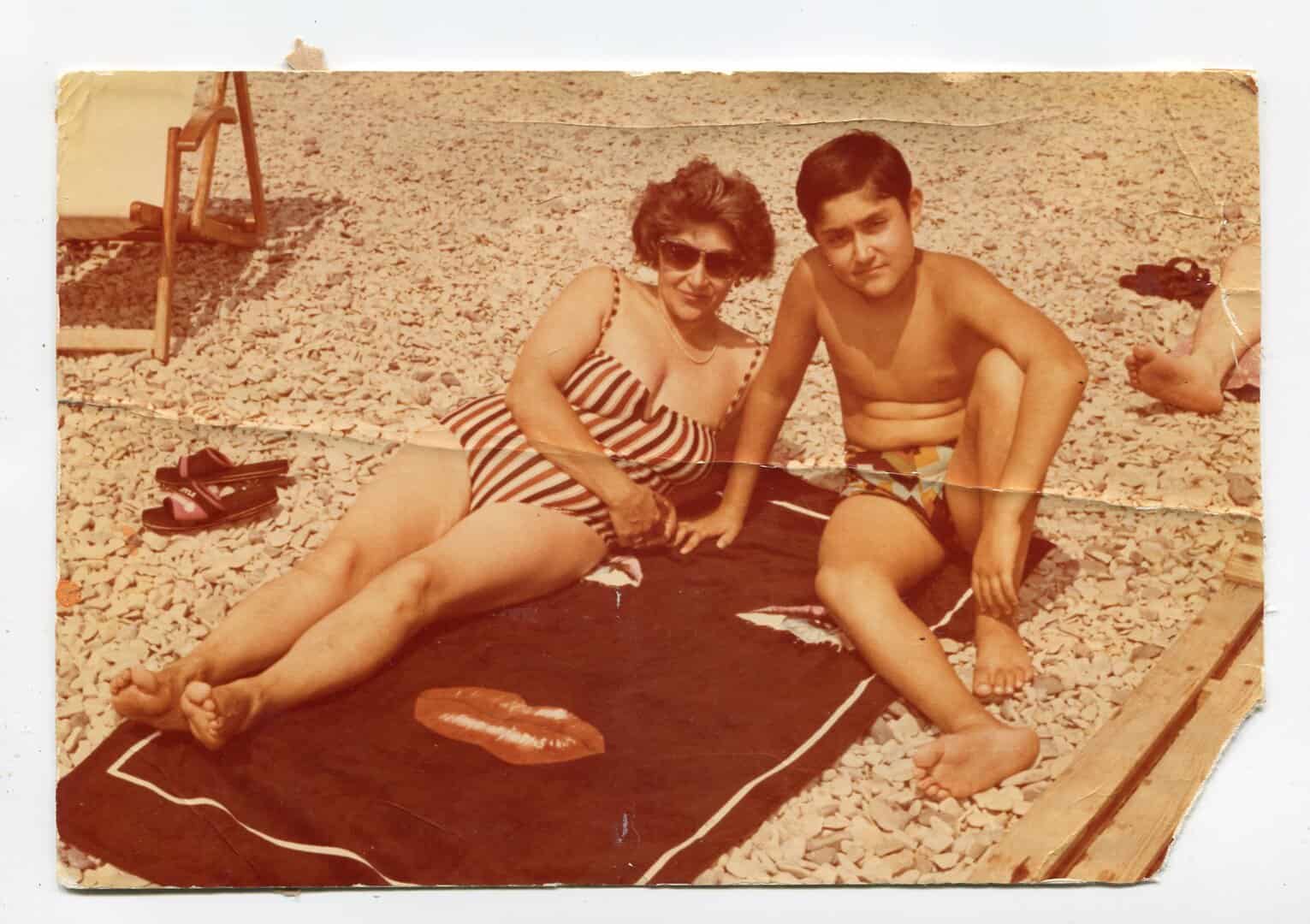 BIG Handsome boy children on beach summer holidays snapshot vintage photo found photo