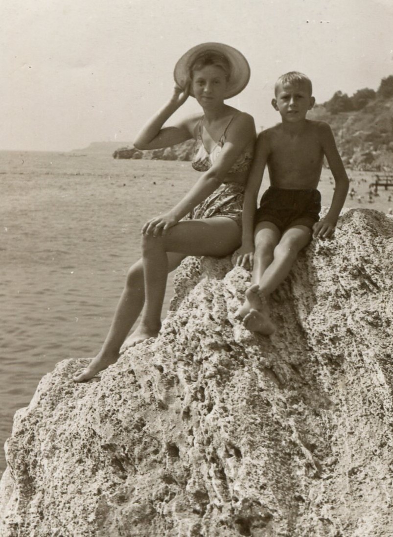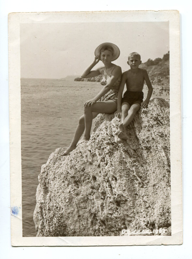 Handsome boy children on beach summer holidays snapshot vintage photo found photo