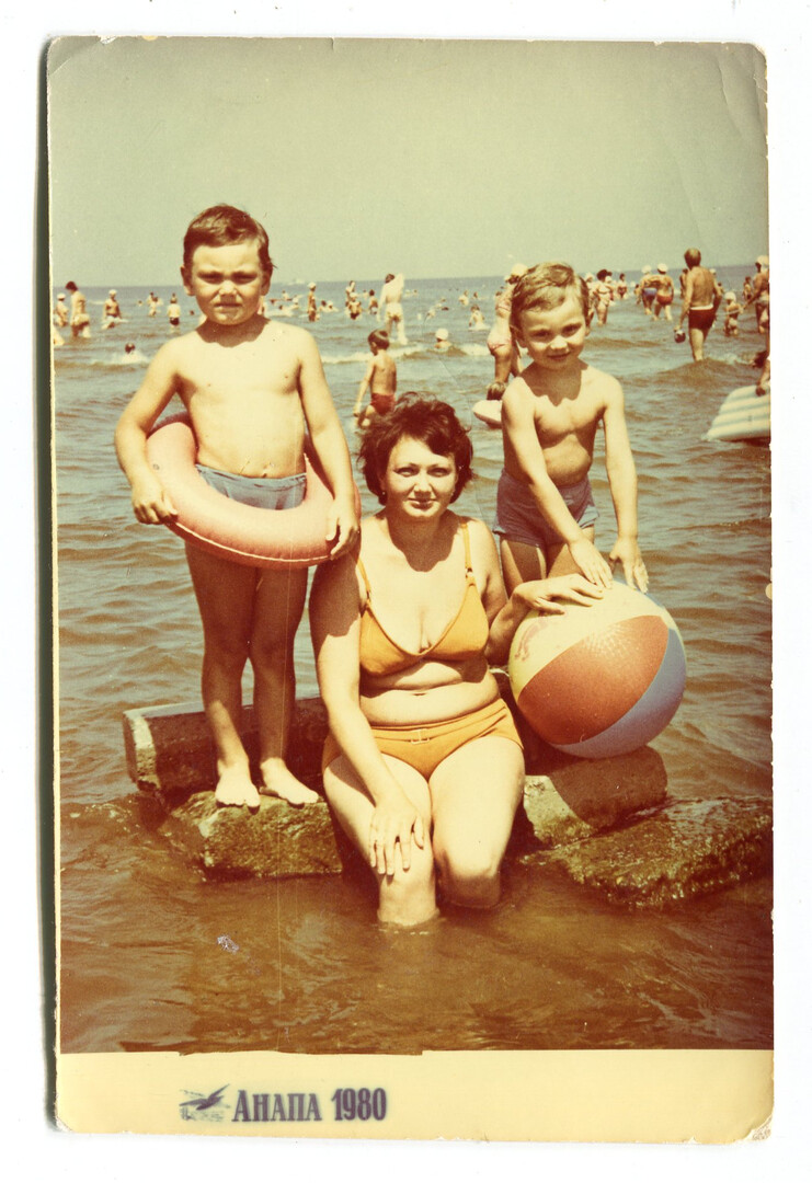 Handsome boys children on beach summer holidays snapshot vintage photo found photo