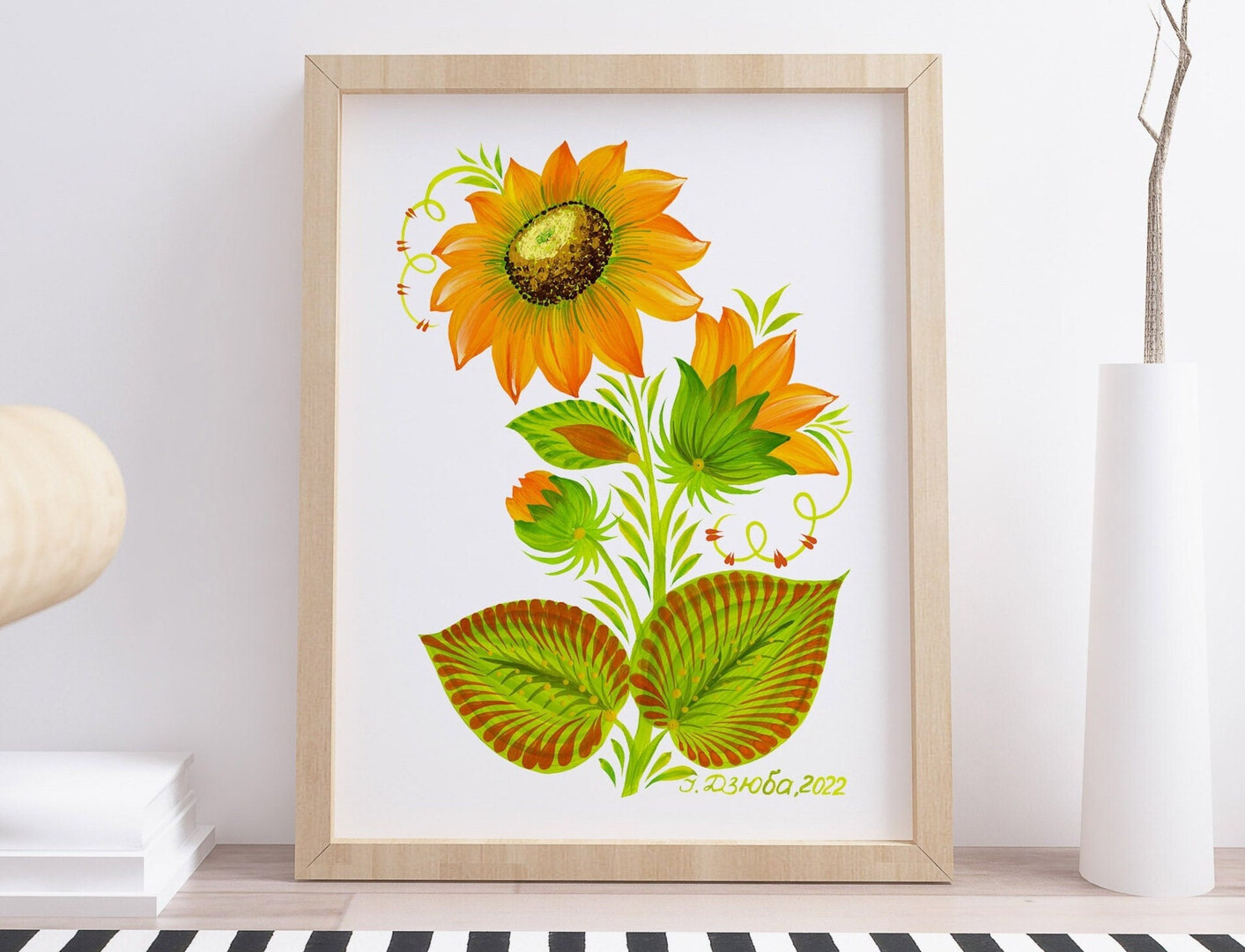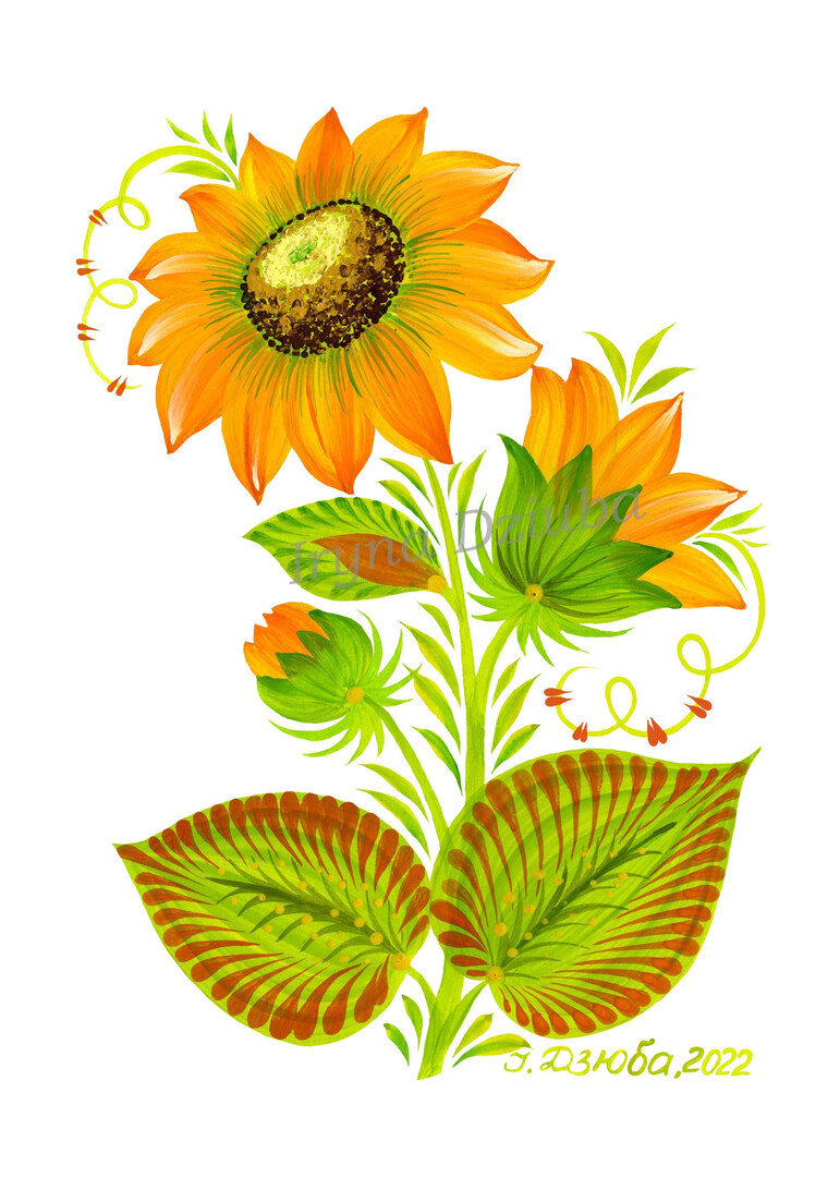 SunFlower drawings Petrykivka art Digital file Ukraine Ukrainian shops postcard. For print