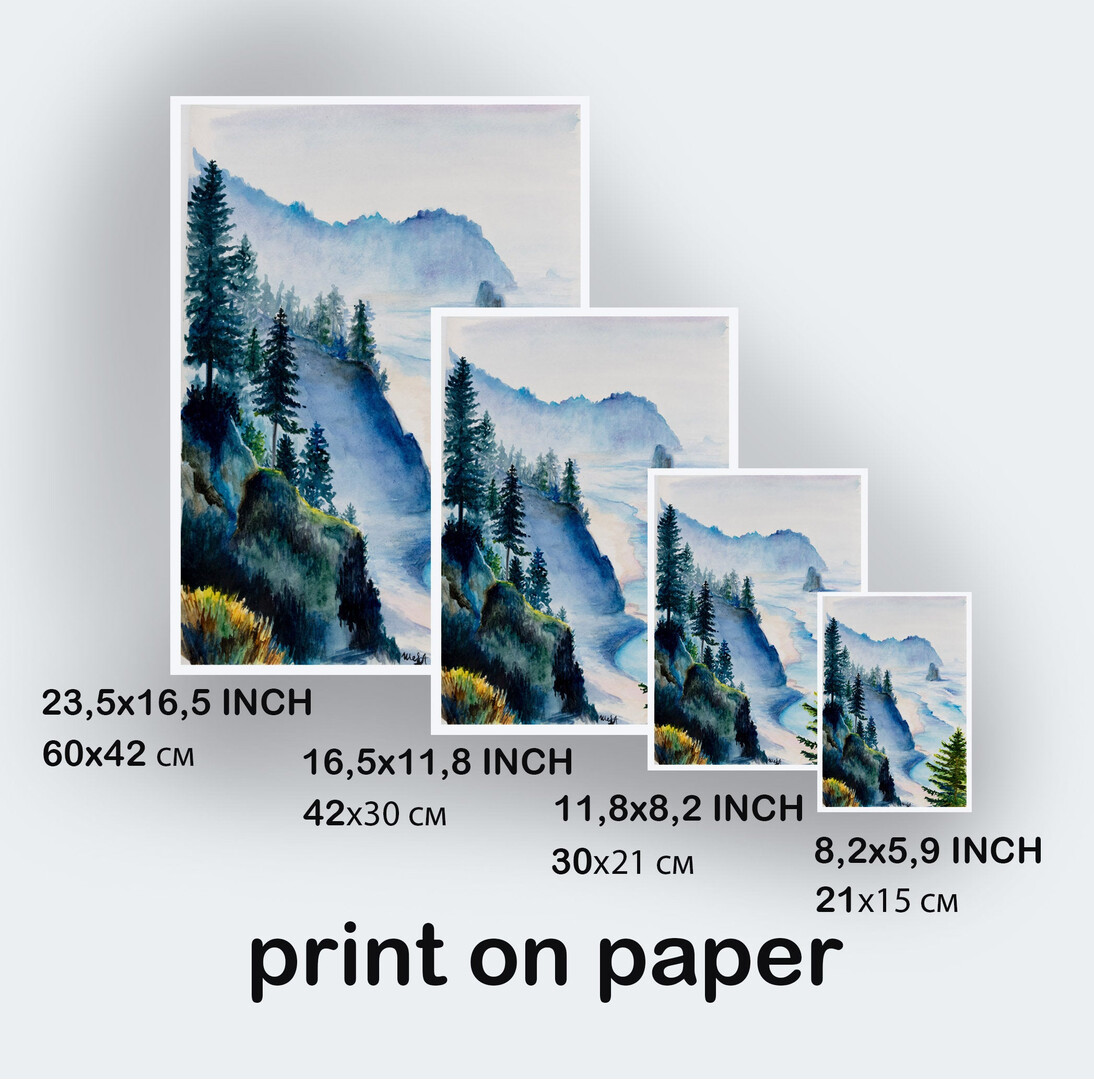 In our store, you can order prints on paper (no frame) or on canvas (stretched on a wooden frame).