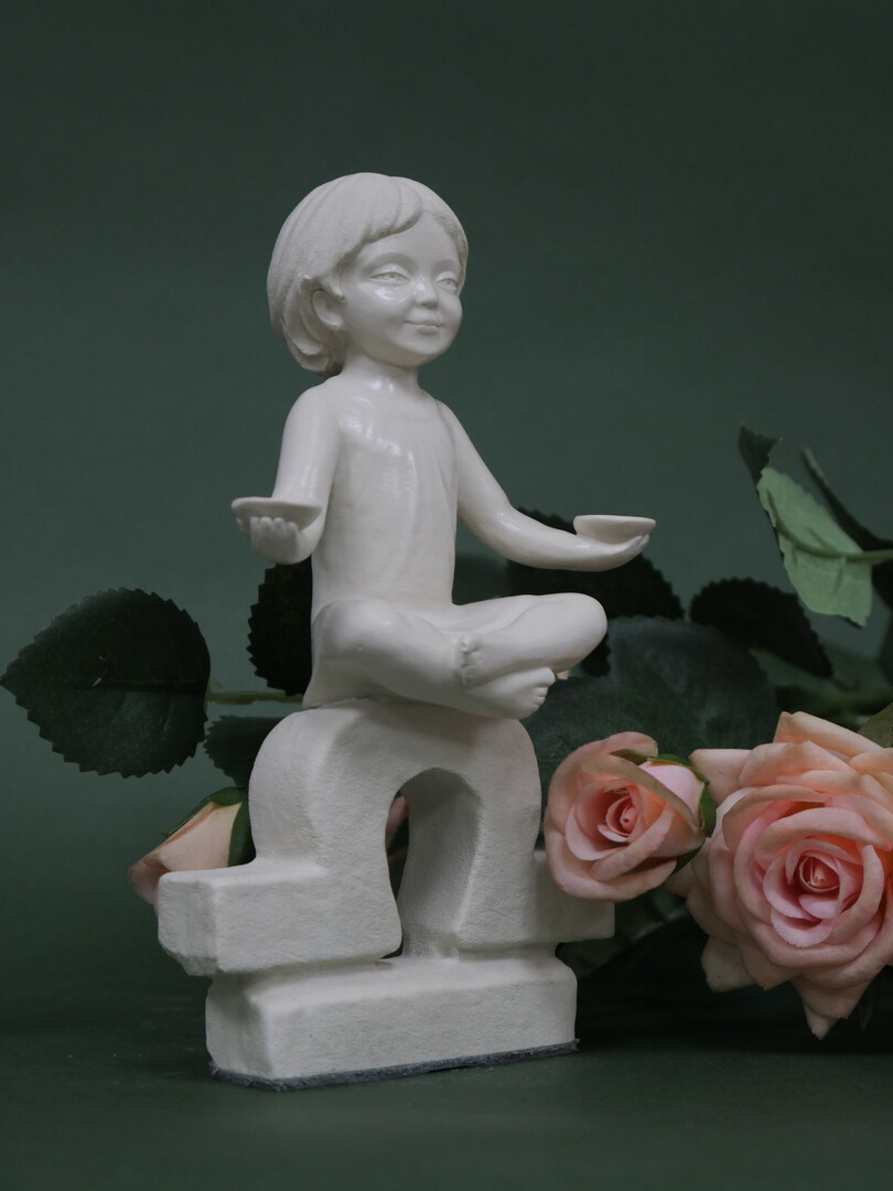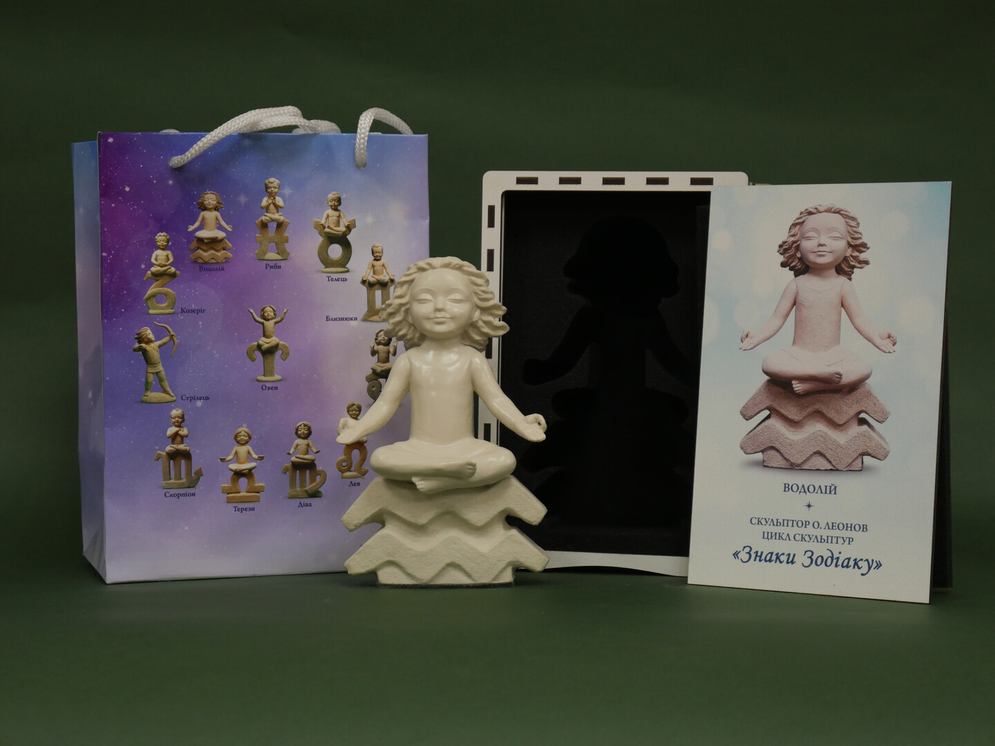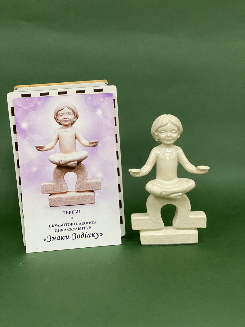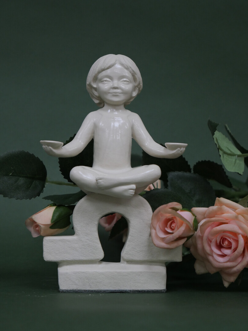 Libra Zodiac Sign - the unique birthday present, the author's work from polyceramics. Unique author's project of 12 figurines depicting images of inspired children who, in meditation, rise above the symbolic image of their Zodiac Sign. Sculpture 3D made of polyceramics.