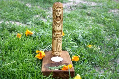 This is hand carved wooden small figurines of the Slavic Goddesses - Mat Zemlya, Dolya and Nedolya. They are made of linden tree and are covered with linseed oil and wax. All figurines are approximately 15 centimeters (6 Inches) tall. You can choose the desired figurine in the drop-down menu. Also you can see other similar statuettes of Slavic Gods and Goddesses in my listings to make an altar for yourself. MAT ZEMLYA (Matka Ziemia or Matushka Zeml'ja) is the Earth Mother and is probably the oldest deity in Slavic mythology.She is also called Mati Syra Zemlya meaning Damp Mother Earth or Moist Mother Earth. Her identity later blended into that of Mokosh. DOLYA and NEDOLYA are two sisters - two heavenly spinners, assistants to the goddess of fate, who spin the thread of every person's life. Dolya, a smiling beauty, spins an even golden thread, weaving happiness and good luck into it. While the gloomy Nedolya spins a spinous, uneven thread, full of trials and difficulties. Despite the fact that Dolya and Nedolya are complete opposites of each other, they are inextricably linked. I can make figurines of other gods or goddesses on an individual order.er gods on an individual order.
