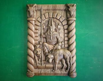 ★ Odin and wolves Geri and Freki ★ Dimensions: Different sizes (Choose in "variations") Material: Natural wood, stain, varnish. Odin is the Supreme Norse God, Lord of Asgard and one-eyed ruler of Valhalla. God of war, sage, wanderer, warrior and sorcerer. Founder of the worlds of Norse mythology. The main satellites and symbols of the God Odin: Ravens Huginn and Muninn The wolves Geri and Freki Decorations for the room, office, home, summer residence, restaurant, cafe, study. Important information: Import duties, taxes and charges are not included in the item price or shipping charges. These charges are the buyer's responsibility. Please check with your country's customs office to determine what these additional costs will be prior to bidding / buying. These charges are normally collected by the delivering freight (shipping) company or when you pick the item up - do not confuse them for additional shipping charges. We do not mark merchandise values below value or mark items as "gifts" - International government regulations prohibit such behavior. We provide FREE WORLDWIDE SHIPPING by regular mail. Estimated shipping times (doesn't include manufacturing time) United States: 8-20 business days United Kingdom: 7-14 business days Canada: 3-6 weeks Europe: 6-22 business days Australia, New Zealand and Oceania: 3-6 weeks ___IMPORTANT__ These shipping timeframes are not exact and may vary depending on the season and congestion of shipping providers. We are not responsible for that. If your parcel is returned because of incorrect address (noticed in order receipt) or if you didn’t pick up it at your local post office and it was returned to us, we can send it back, but you will need to pay the shipping costs even if it is free shipping for your order. In this case you can also receive refund (except engraved and custom orders) reduced by shipping costs (even if it is free shipping for your order).