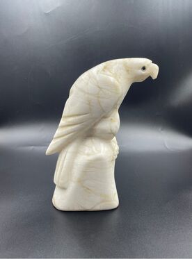 A striking vintage white stone carving of a polar (snow) owl. The figure is hollow inside, suggesting it may once have served as a night light. Dimensions: 21 × 11 × 8.5 cm (8 1/5″ × 4 1/2″ × 3 1/2″) Weight: 1871 g Condition: Satisfactory vintage condition with visible fissure on the right side and additional cracks (please see photos for details). Availability: Ready to ship Shipping Information: Ships from Ukraine.  Estimated delivery to Europe or the USA: 2–3 weeks.