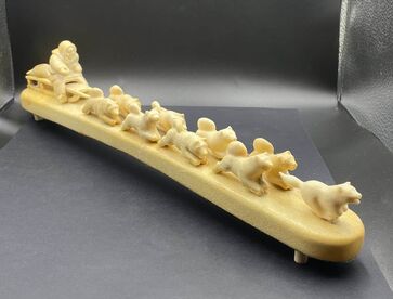 Let me introduce you to the Vintage Handmade Inuit scene, Inuit art, Inuit carving, Yupik, Dog team, 43 * 8 * 4.5 cm, 620 g.  In good condition and it is available now!  Note, please, that the shipping time from Ukraine to Europe and USA can take 3-4 weeks.