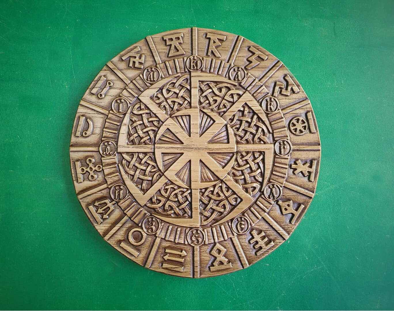 Slavic amulet Kolovrat in the rune circle, Wall art, Wall decor, Wall hanging