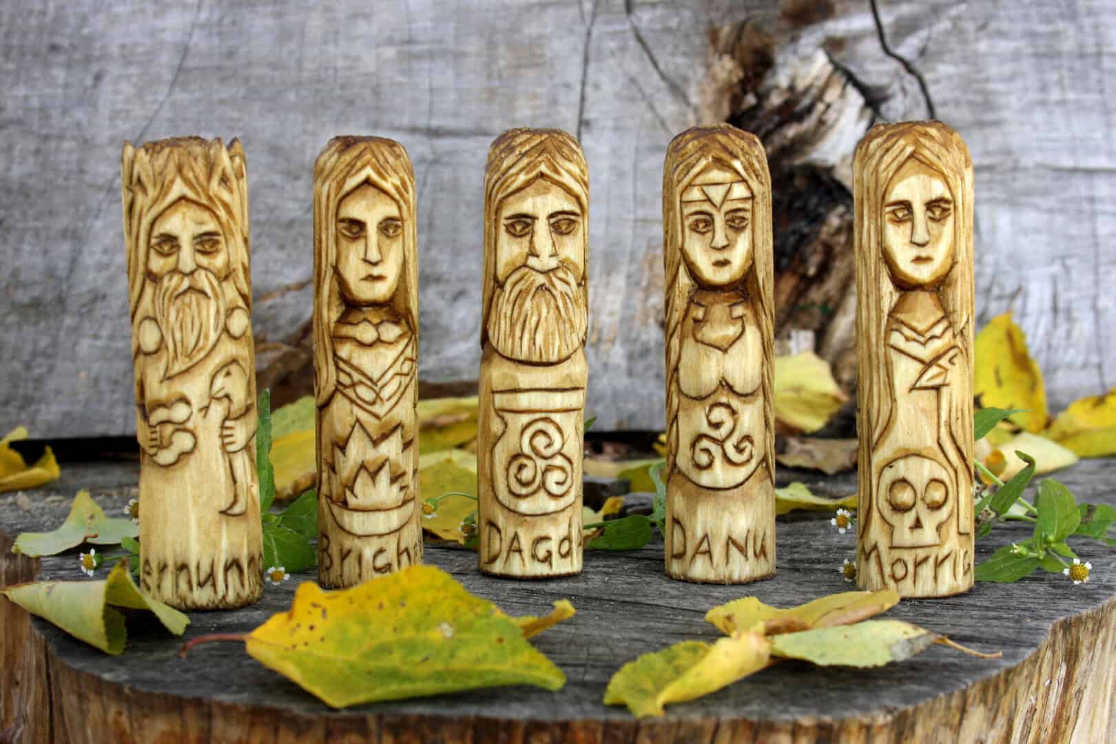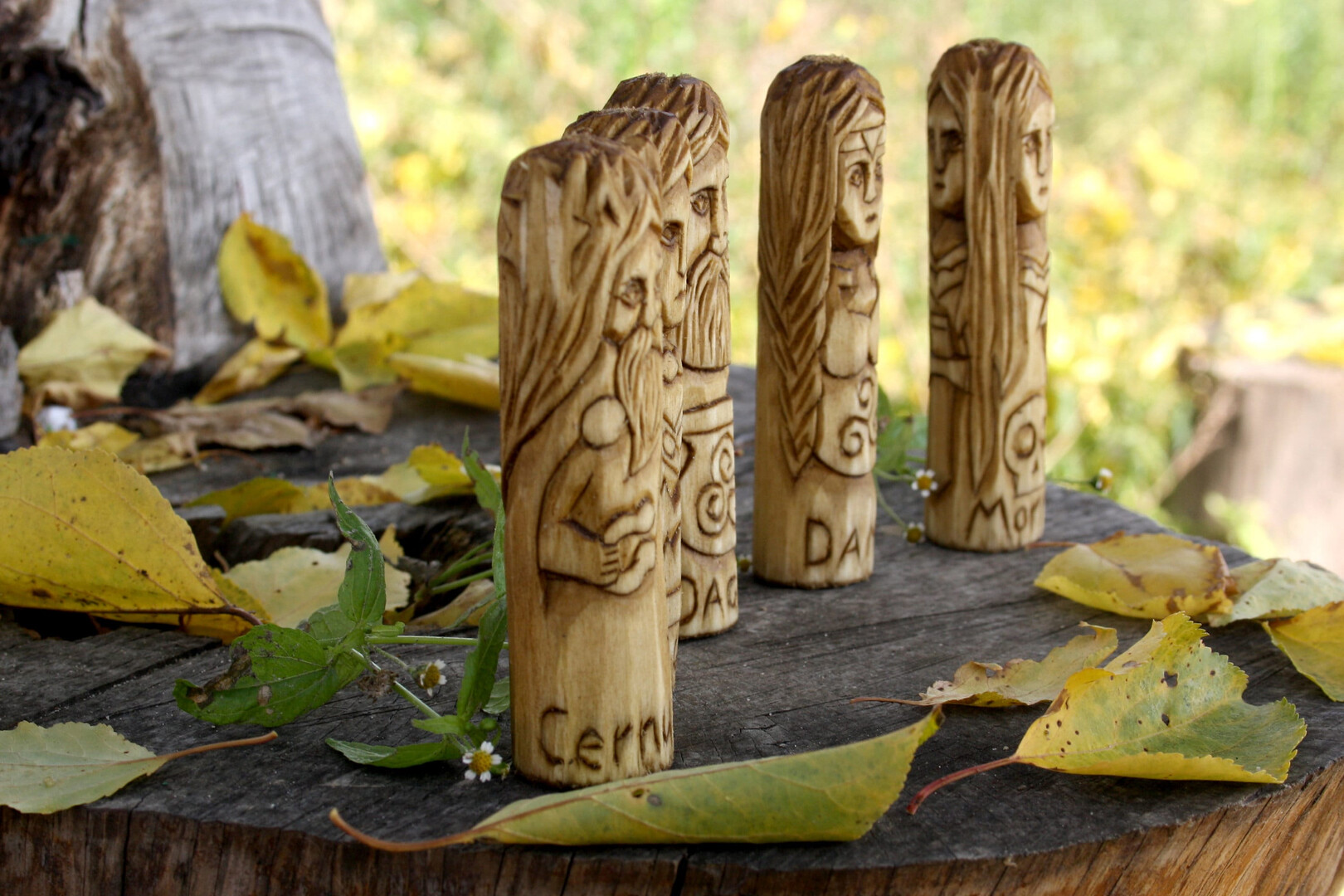 Small Wooden Celtic Altar. Handcrafted Statue. Danu Dagda Brighid Cernunnos and Morrigan