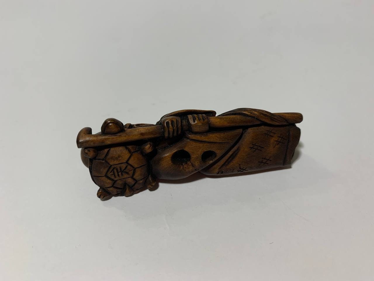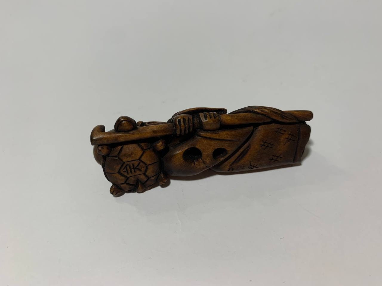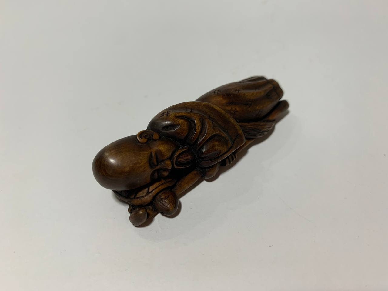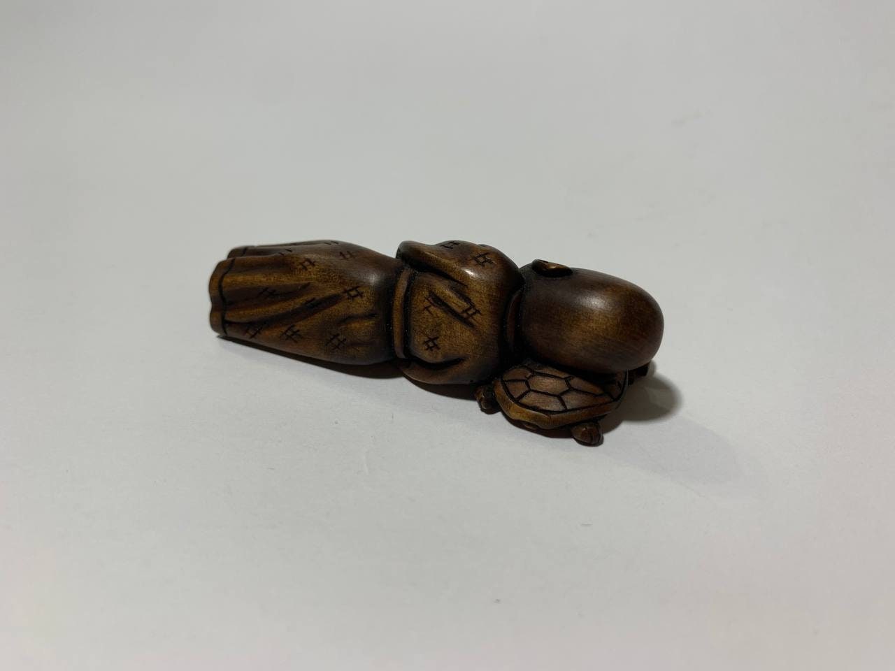 Unique Netsuke, Handmade Netsuke, Carved Netsuke, Netsuke Sleeping Fukurokuju and Turtle, Boxwood Netsuke, Wooden Netsuke, Netsuke, Okimono