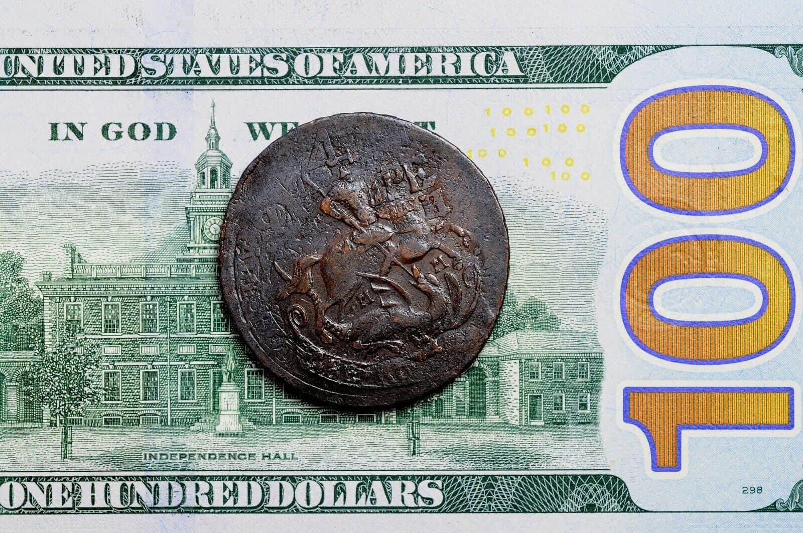 RUSSIAN EMPIRE CATHERINE II 2 Kopeks 1763 MM Overstrike from 4 Kopeks 1762