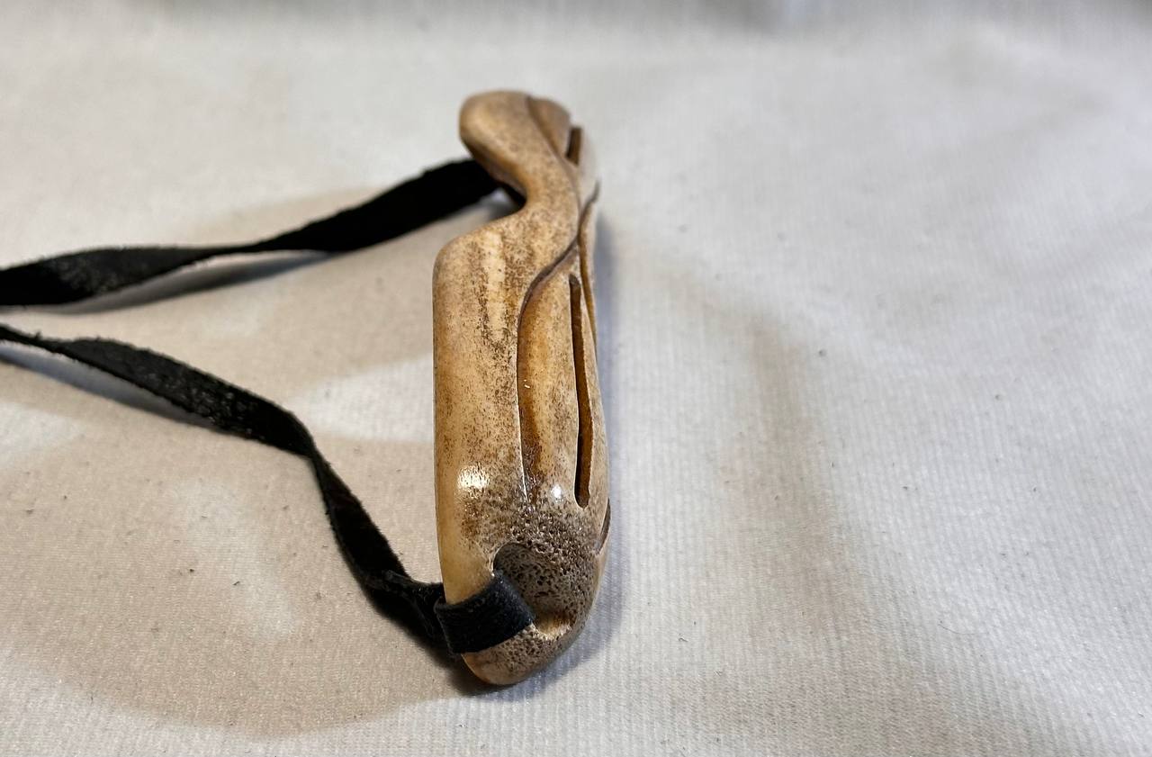 Experience the ingenuity of Arctic craftsmanship with these handmade, Eskimo-inspired snow goggles. This piece is a carefully crafted replica of traditional Inuit eye protection, blending history, artistry, and functionality.