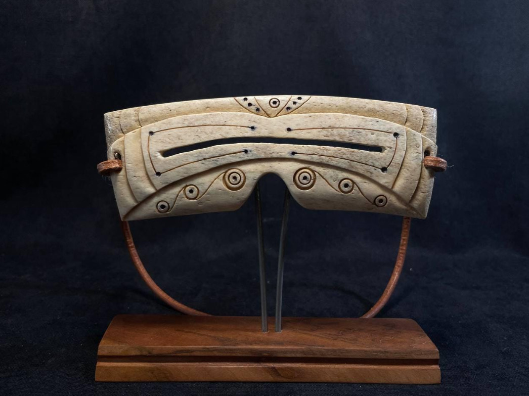 Step into the world of Arctic craftsmanship with these handmade, Eskimo-inspired snow goggles. Created as a replica of traditional Inuit eye protection, they combine historical authenticity, artistry, and functional design.