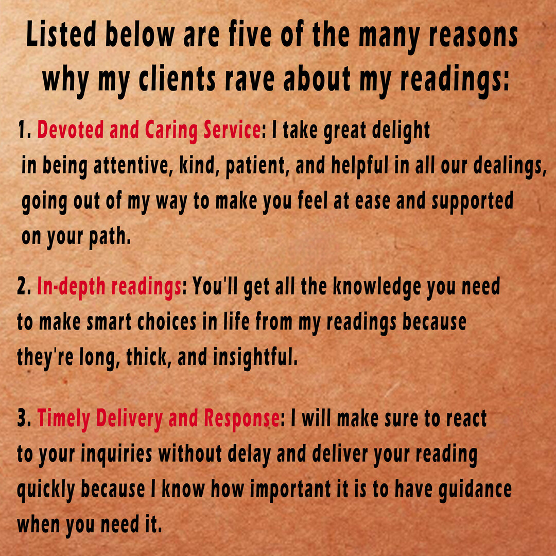 Your email will receive a digital download of the reading. After a purchase, the response will be delivered no later than 24 hours.